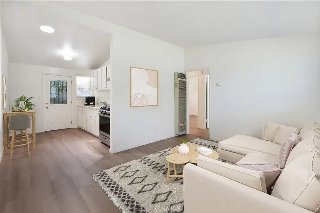 Charming middle unit that is as cute as a button in an excellent location. Features include but are not limited to - 2 bedrooms, 1 bath - single level unit, dual pane windows, freshly painted, recently installed stainless and black gas stove and vent, white cabinets in kitchen with lots of storage, updated counter top, recently installed luxury vinyl plank flooring, updated mouldings and casings, recently replaced vanity, mirror, lighting and lavatory in bathroom. Lovely back patio yard with grass. Washer/Dryer hook ups. Close to shopping, restaurants, Triangle square, entertainment, and Newport Beach.
