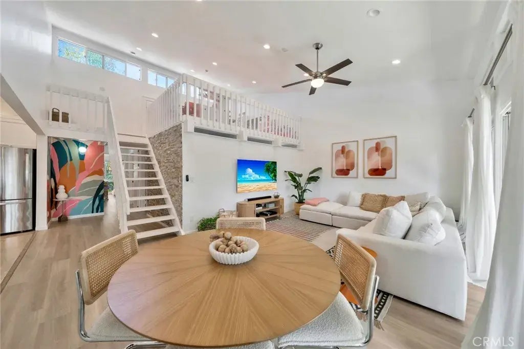 Welcome to this beautifully remodeled and spacious 3 bedroom, 2 bathroom end unit condo located in the highly sought after Brookside Village community. This top floor unit boasts 1,500 sq ft of living space, featuring soaring 17 foot vaulted ceilings in the living room, kitchen creating an open and airy ambiance. The home has been thoughtfully upgraded with Travertine stone tiles and engineered -inch wood plank floors. Enjoy energy efficiency with new Milgard dual pane windows, built in electric wall heaters, a new electric panel and a Schlage smart lock front door. The Lutron smart home system controls recessed lighting and integrates with Ring Security for enhanced safety. The thoughtfully designed chefs kitchen is an elegant blend of style and function, featuring a stunning butcher block and quartz island with seating for three. Outfitted with premium stainless steel LG appliances, a reverse osmosis water filtration system, and soft close cabinetry, every detail has been curated for a refined culinary experience. Open maple inspired shelving adds a touch of warmth and sophistication. The seamless open concept layout flows effortlessly into the expansive living area, which extends to a private 20 foot balcony, perfect for upscale entertaining or quiet sunset evenings. Indulge in the serene elegance of the primary suite, where refined comfort meets thoughtful design. This expansive retreat features a bespoke, custom built closet and a spa-inspired en suite bath, creating a private haven of sophistication. The guest bathroom rivals a five star resort, adorned with honed Tra