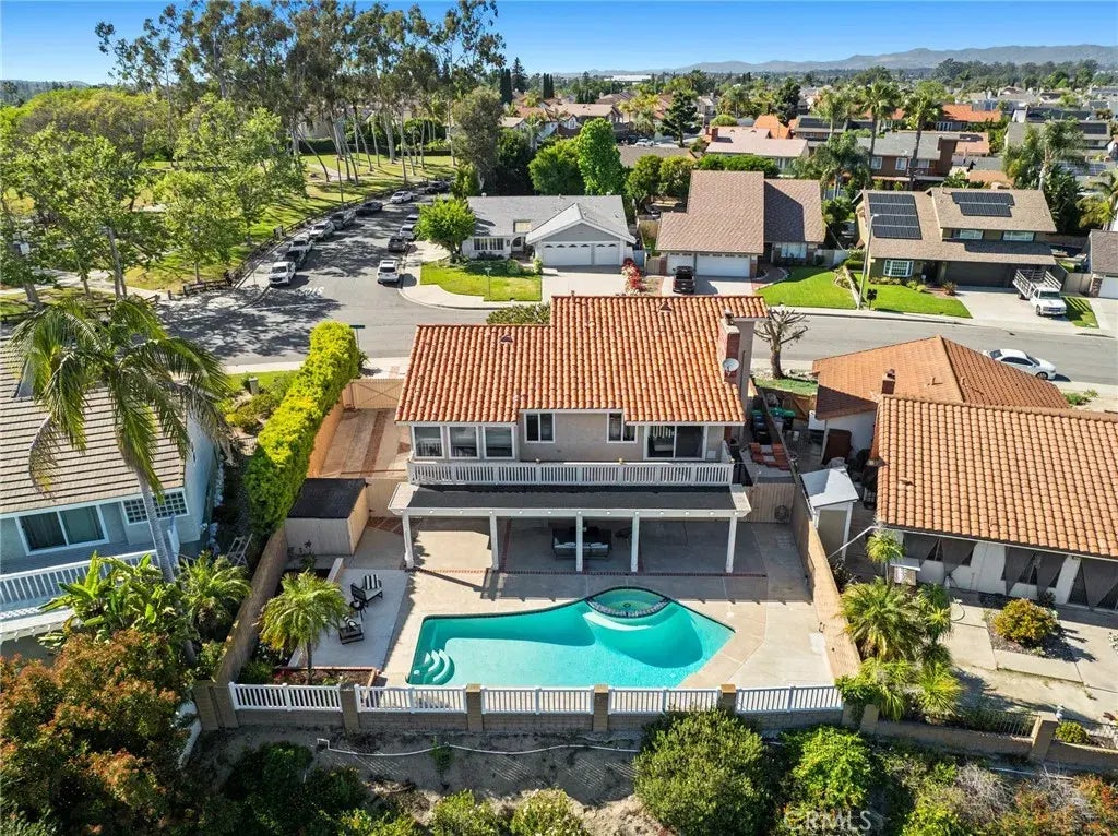 ARE YOU DREAMING OF A BEAUTIFULLY RENOVATED POOL HOME w/ VIEWS, JUST STEPS TO THE PARK? You're in luck! This incredible home is loaded w/ recent renovations & is only steps to private Beckenham Park. This truly turn-key 4 bed, 2.5 bath home has been upgraded throughout. New HVAC system, replaced tilt-up garage doors, newer front yard turf, remodeled kitchen and bar. Open floor plan is a dream w/ high-end recessed lighting, rich flooring, new windows & sliders, also the whole house has been Re-Piped! Modernized & completely renovated chef's kitchen w/ updated cabinetry, new sink, chic tile counter tops & newer stainless-steel appliances. Appreciate large sliders providing beautiful views of sparkling pool and Laguna Hills. Adjacent to the kitchen is a cozy family room with a gas fireplace, ideal for relaxing evenings. Renovated bathrooms w/new cabinets, sink tops, updated showers & floors. Perfect entertainment home! Upstairs, the primary suite offers a private retreat with a spacious layout and an en-suite featuring dual sinks and a soaking tub. The additional bedrooms are generously sized, providing flexibility for various needs. For added convenience, the home includes an individual laundry room with washer and dryer. Enjoy newer doors that lead to your backyard sanctuary. Outside, the sparkling pool & tranquil patio offers endless possibilities. The property also features a 3-car garage with direct access, providing ample storage and parking space- including RV parking. Located in the highly sought-after Saddleback Valley Unified School District, this home is within clos