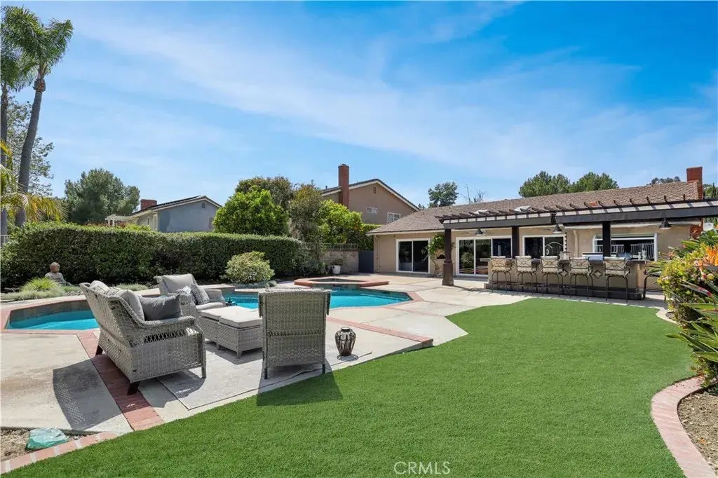 Amazing location and Views!! This stunning SINGLE STORY home is located in a highly desirable area of Mission Viejo. Cul de sac location and inviting elevation. This home is true pride of ownership. Upgraded with beautiful finishes. Cute front yard with cozy sitting area and mature landscape. From the moment you open the double entry doors you know this is the home for you. Light and bright and a wonderful floorplan. Living room with fireplace and a nice size family room with views of the stunning backyard and lush garden/pool area. Simply stunning kitchen with all the bells and whistles. Garden window looking out to the entertainment area and lush greenery. Nice size bedrooms with large windows to let in the natural light. Hall bath newly updated and the master bath is right out of a magazine. Master bedroom with sliding door out to the backyard. The entertaining backyard is just magical. Sparkling pool and spa, lush garden and nice size grass area as well. The built in BBQ with its large bar area is ideal for entertaining. This home is one of kind with its common area behind the home with mature trees and flowering ground cover. Very private and serene setting. Low tax rate and this property has the Mission Viejo Lake amenities. Boating, canoes, beach, fishing, paddle boards, summer concerts and more. Don't miss out on this one!!
