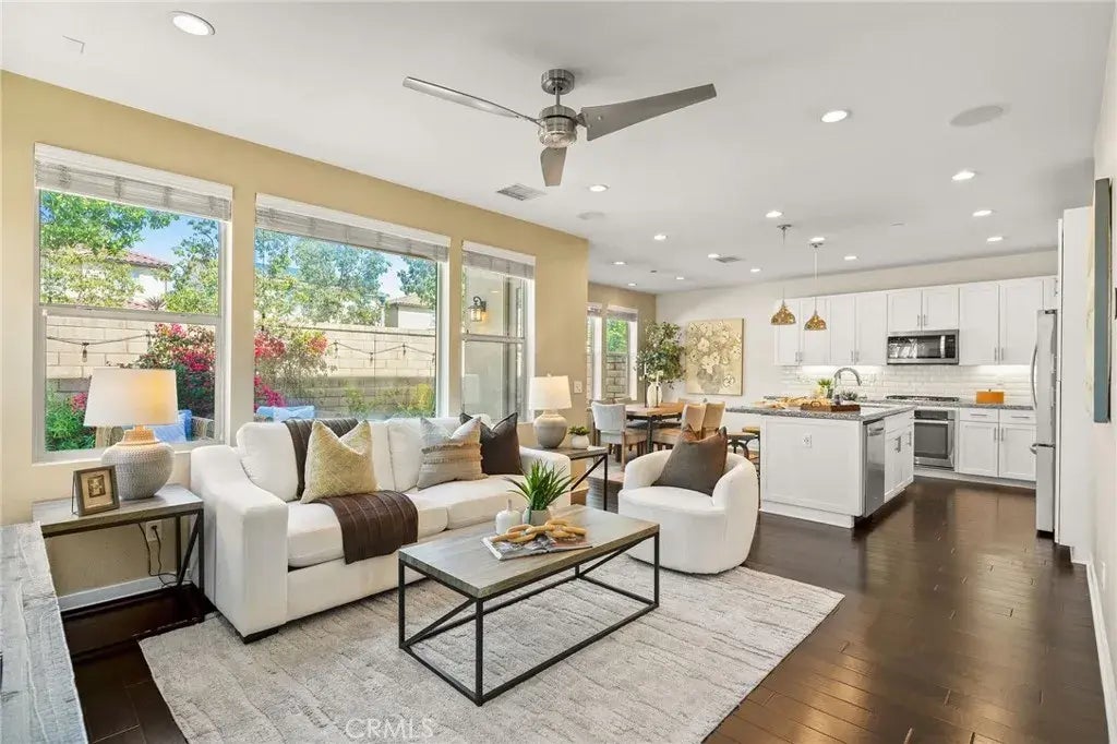 Welcome to this Baker Ranch beauty! This home sits on approximately 1,700 square feet and boasts a spectacular floor plan w/ many upgrades. With 3 bedrooms (all upstairs), 2.5 bathrooms, and a separate downstairs den/office space, this home is sure to impress. The property is situated on a quiet street, ideally located across the street from a park and near to various amazing Baker Ranch amenities. The gorgeous backyard is an entertainer's dream, with picturesque greenery and plenty of space to enjoy the golden California sun. Upgrades in the home include: upgraded kitchen - including custom kitchen cabinets, granite countertops, newer stainless steel appliances; paid solar, custom blinds and window coverings, wood floors, tankless water heater, custom paint, custom lighting; including recessed LED lighting. The home also includes an epoxied 2 car garage with direct home access. Enjoy all that this Baker Ranch neighborhood home has to offer. Low HOA dues gives you access to so many amazing amenities; including 3 spectacular pools, countless parks and courts/fields and fantastic schools. Close to the Irvine Spectrum, great shopping & restaurants, as well as central to the 5/405 Freeways & Toll Roads. This Baker Ranch neighborhood is a hidden gem for families and this spectacular single family home is a must see!