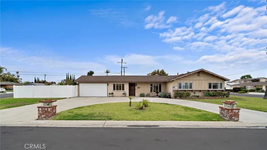 Welcome to this beautifully upgraded 5-bedroom, 2-bath single-story home, perfectly situated on a massive 11,346 sq ft double corner lot. This rare find offers endless potential, including room to build an ADU or expand with an additionideal for multi-generational living or investment opportunities. Step inside to discover a spacious and well-designed layout featuring a remodeled kitchen with granite countertops, stainless steel appliances, and sleek tile flooring that flows seamlessly throughout the home. The remodeled bathrooms offer modern finishes, while the dining room, living room, family room with fireplace and additional room with built-in drawers & cupboards that can be used as an office, craft or sewing room provide multiple spaces for gathering and relaxing. You'll love the custom wood-trim sliding door in the living room, complete with beveled glass accents, and enjoy natural light with elegant plantation shutters in both the dining and living rooms. Stay comfortable year-round with newer central A/C, furnace and dual pane windows. Outdoors, the property continues to impress with a loop driveway, separate side RV access behind double 10-ft steel gates, a new 990 sq ft RV pad (total RV gated area is 2,500 sq ft), and a covered backyard patio - perfect for entertaining. The vinyl fencing separates the RV area from the beautifully maintained backyard for added privacy, and a new backyard block wall adds security and peace of mind with automatic sprinklers in both front and back yards. This home is a rare blend of space, upgrades, and future potentialdon't miss your