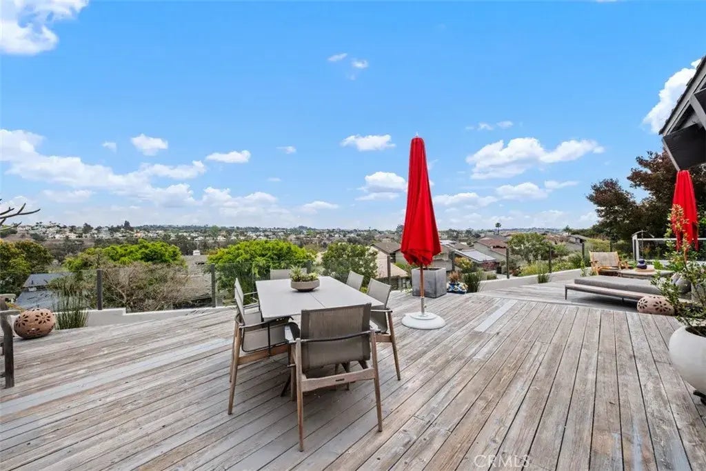 Rarely available, single story home with panoramic views in the gated community of Laguna Woods, designed by renowned Laguna Beach architect Chris Abel. At the end of a single loaded cul-de-sac, this property exudes mid-century modern, sleek & contemporary with wood and glass details and dramatic cathedral ceilings with exposed wood beams. Meticulously updated, recent (2017) upgrades include a complete repipe, Trane furnace and air conditioning with ultra-quiet compressor and air filtration, and whole house water filtration system. The interior has been extensively renovated with large format Italian flooring & lighting fixtures, upgraded plumbing finishes, and elegant fireplace enhancements. The gourmet kitchen, completely remodeled in 2018, features custom cabinetry, premium fittings, and top-of-the-line luxury appliances including Wolf cook top & ovens, Sub-Zero freezer and True Residential refrigerator. Exterior boasts fresh exterior paint (2025), and a professional landscape & hardscape remodel (2024) to create a tranquil, resort-like setting that is water-wise and low maintenance. Additional updates include remodeled powder bath with new vanity and lighting (2025). The home features a substantial custom metal entry gate with ring camera, affording privacy from the street and a grand entrance into the home. Thoughtfully placed windows everywhere you turn in the property make it light, bright, and cheerful including the atrium between the secondary bedroom and primary bedroom retreat. The spacious floorplan boasts 2BD, 2.5BA, a retreat off the primary bedroom perfect f