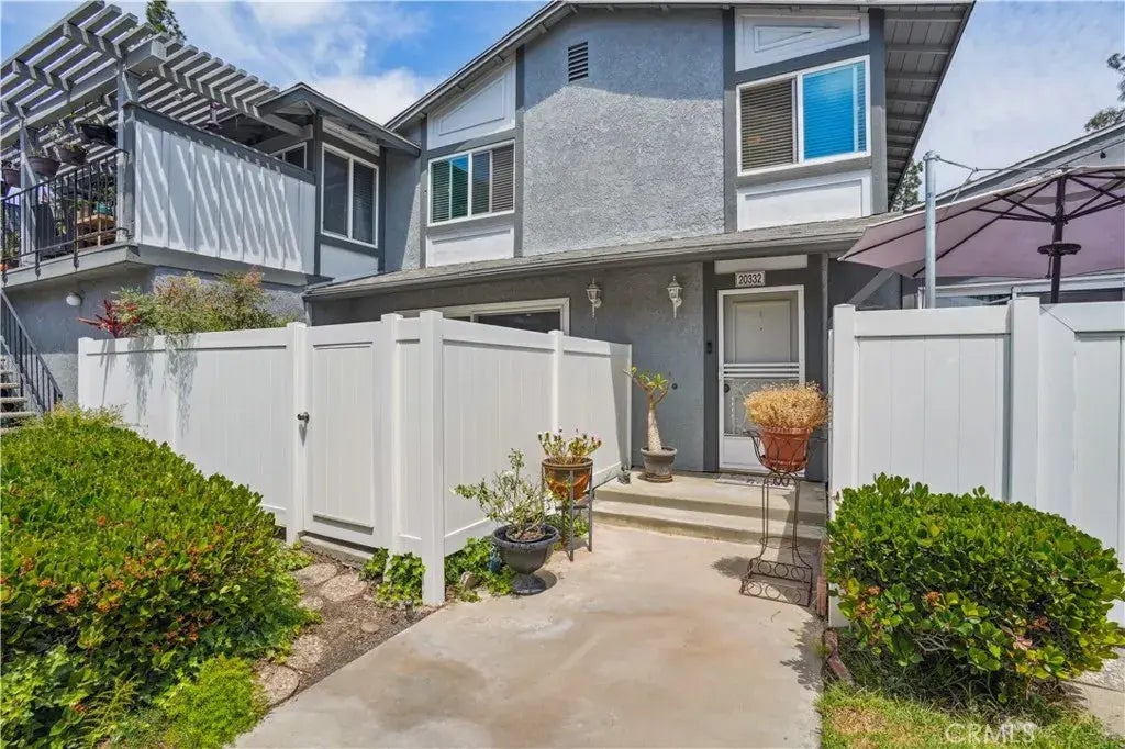 Welcome to 20332 Flower Gate Ln, nestled in the highly sought-after Fairmont Hills neighborhood of Yorba Linda. This light and bright home features a spacious front patio perfect for relaxing or entertaining. The main level offers travertine floors throughout with the living room seamlessly flowing to the dining area and to the kitchen. Just past the kitchen is the indoor laundry room with direct-access to the two-car garage. Upstairs are engineered wood floors throughout. Two spacious bedrooms share the full hall bathroom. Enjoy resort-style living with access to two sparkling community pools, relaxing spas, and well-maintained groundsall covered by an HOA that includes basic cable, Showtime and Wi-fi, insurance, trash, security, landscaping, and exterior maintenance. Located within the award-winning Placentia-Yorba Linda Unified School District, this home offers the perfect blend of comfort, convenience, and community.