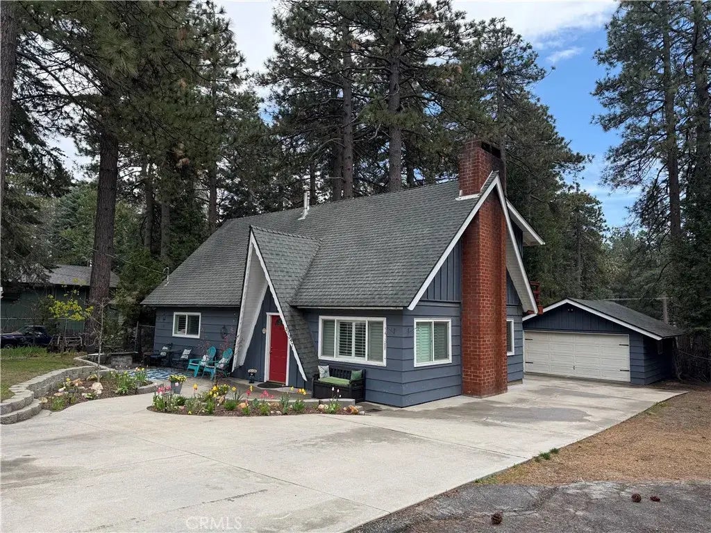 Beautiful turnkey property with gorgeous wood beamed ceilings, new beautiful vinyl flooring throughout, open concept living room with fireplace, dining, and recently painted large kitchen with breakfast nook, granite countertops, newer appliances. Two bathrooms have been tastefully renovated, downstairs bedroom with full bathroom. Huge master bedroom with beautiful bathroom is upstairs with fireplace and large balcony. A third guest bedroom is upstairs with a half bath and a big balcony. Huge driveway leading to 2-car detached garage has room for many cars plus RV parking! Nice fire pit in front stays and so does the shed in the backyard. Property is close to highways 18 and 330 and Lake Arrowhead.