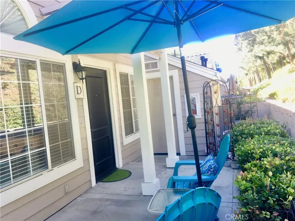 Cheery private end unit in popular gated Aliso Viejo community of Canyon Villas. Lots of windows create a light and bright interior space. Fabulous location has secluded fenced patio area with view of hillside/trees Garage below, no one above, and only 1 shared common wall - feels like you're living in your own house. Open great room floorplan with cathedral ceilings, accent window and track lighting. Kitchen is open to living room and has nice white cabinetry, multiple windows, vaulted ceiling, track lighting, and a quaint eating area. Vinyl plank flooring throughout. High ceilings in the master bedroom give it a spacious feeling & includes double wide doors, built-in cabinets, and walk-in closet with mirrored doors adjacent to master bath sink area. Shower over tub features glass enclosure & privacy door. Unit has A/C to keep cool during the warmer summer days & a washer/dryer closet adjacent to patio. 1 car garage includes storage cabinets for your extra stuff. Amenities in the complex features in ground pool(s) & spa(s), and clubhouse with gym/workout equipment, sitting rooms, pool table & a full kitchen. Convenient access to shopping, theater, schools, parks, walking trails, CA Rt 73, and close to Laguna Niguel Regional Park.