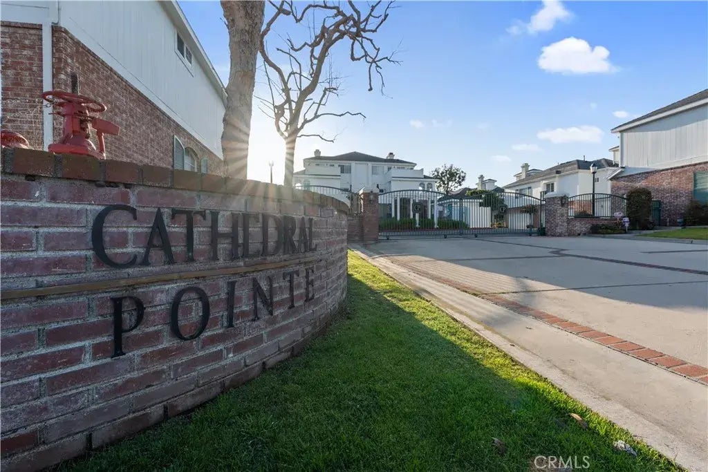 Incredible opportunity to live in the exclusive gated community of Cathedral Pointe! Comprised of only twenty-five units, townhomes in this highly coveted community rarely come on the market. This beautifully remodeled tri-level is an end unit, nestled in the heart of Huntington Beach. Discover the seamless fusion of elegance and modern living, only three miles from the beach! This townhome captures the true spirit of Southern California living. With two comfortable bedrooms, both with attached bathrooms, as well as an additional half-bath on the main level, it provides a welcoming and sophisticated living environment. As you step inside, you will be greeted by the beautiful foyer featuring soaring ceilings and a spiral staircase leading to the second floor living area, which boasts a modernized gas fireplace, complemented by custom paint and baseboards. The updated kitchen, complete with a breakfast counter, boasts stainless steel appliances, modern cabinets, and granite countertops. The dining room conveniently opens to a balcony that overlooks the tranquility of this quiet community, providing an ideal setting for relaxed meals or entertaining visitors. Ascend to the upper floor to find an exceptionally roomy primary bedroom with high vaulted ceilings and an opulent ensuite boasting a roman bathtub. Enjoy a second private balcony located off the main suite for spectacular sunset views. The second bedroom, located on the ground level, boasts a delightful skylight with an upgraded full bathroom, providing a desirable separation between the bedrooms for maximum privacy and