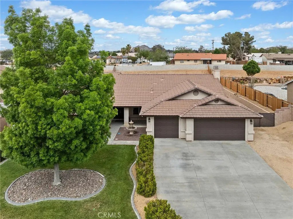 Stunning Single-Level Home in the Highly Sought-After River Bend Neighborhood. This beautifully maintained 5-bedroom PLUS an office, 3-bathroom home is nestled on a spacious half-acre lot. Built in 2002 and offered for sale for the first time by the original owners, this home combines modern amenities with a thoughtfully designed floor plan, offering comfort and convenience at every turn. As you step inside, you'll be greeted by an open and airy living space with soaring ceilings and an abundance of natural light. The freshly painted interior and low-maintenance vinyl flooring create a clean, inviting atmosphere throughout. The expansive kitchen seamlessly flows into the large family room, making it perfect for both everyday living and entertaining guests. The private primary suite is a true sanctuary, featuring double doors, tall ceilings, a generous walk-in closet, and a spa-like en suite with dual sinks, a walk-in shower, and a separate soaking tubideal for unwinding while enjoying peaceful views of the backyard. Step outside to your very own outdoor oasis, complete with a private pool and spa, perfect for relaxing or hosting gatherings. The large backyard provides ample space for gardening, outdoor activities, and future projects. You'll appreciate the beautiful desert sunrises and sunsets that serve as a stunning backdrop to your everyday life. Conveniently located within blocks of Rio Vista School and just a short jaunt from Mojave Narrows, this home offers easy access to hiking, wildlife viewing, and other outdoor recreation. The River Bend community is also close to
