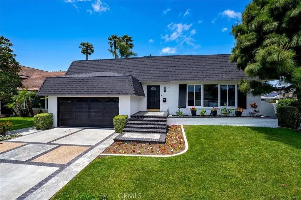 Super sun splashed oversized corner lot in One of the best neighborhoods in Huntington Beach. Beach close, the homes in Meredith Gardens are highly in demand, come and see why! This newly remodeled 5 bedroom 3 bath, spacious 2,684 square foot executive home on an interior 7,280 square foot corner lot is perfect for a sparkling pool or enjoy the manicured yard and fruit trees. Beautiful sunset glow. The first floor has direct access from your 2 car garage, a beautiful family room plus remodeled kitchen with quartz counter tops, Dual paned vinyl clad slider opens to your sun-drenched backyard, a very large office/5th bedroom and a remodeled bathroom all on one level. A few steps up is your beautiful living room with vaulted ceilings and a cozy brick fireplace. The second level has 4 more bedrooms and 2 more remodeled bathrooms. If privacy is your want, The primary bedroom is set apart and enjoys sunset views while looking over the backyard. All the flooring throughout the home is new, most is luxury vinyl plank, the entryway is custom tile and the upstairs bedrooms have beautiful new carpet. New interior doors, hinges and matt black French style door levers. Recessed lighting throughout, and a new 50 year roof. Dual paned windows and The finished garage has a new epoxy floor, built-in storage and direct access into your home. The backyard is well landscaped and large enough for a pool, it is a sunny oasis that makes entertaining a dream, perfect for games, barbecues and hanging out. You are minutes away from one of the best beaches, bike paths, parks and top-rated schools and