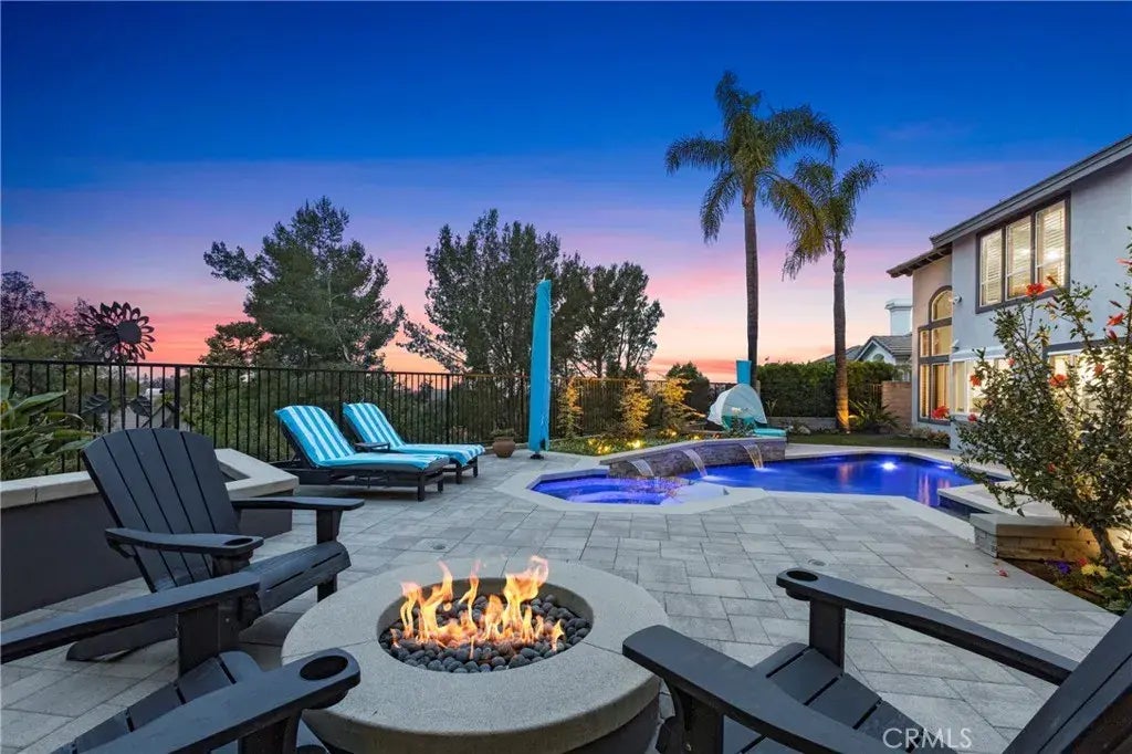 Be the DESTINATION HOME for family and friends while enjoying California living at its finest in this Resort Style entertainers home. Located in the exclusive Gated Community of WALDEN and nestled against the Saddleback Mountains this home boasts breathtaking views, meticulous and lush landscaping, new custom hardscape and the tranquility of a tropical paradise. A sparkling pool and spa with a Baja shelf, new pebble tech coating and waterfalls complement the outdoor kitchen, cozy fire pit and multiple seating areas. As you enter through the Leaded Glass Double Doors you are welcomed by the abundance of windows that enhance the interior with warm sunshine all day long! This highly upgraded home is a true blend of designer touches creating warmth and comfort thruout. The soaring ceilings in the living and dining rooms are accented with custom paint, shutters and views or the expansive outdoor space. The Gourmet Kitchen has been recently updated offering ample counter space for creating your favorite culinary delights with Stainless Appliances, a large island with seating as well as a generous sized breakfast nook. The kitchen opens to the huge family room that is currently set up as an awesome Theater Room creating a true cinematic experience. A Main Floor Bedroom with remodeled ensuite bath is perfect for guests. The sweeping staircase leads to the spacious primary bedroom with high ceilings, balcony, shutters, ceiling fan and dual sided fireplace. The luxurious and spa inspired bath has been remodeled with an oversized soaking tub, separate glass enclosed shower, dual vanit