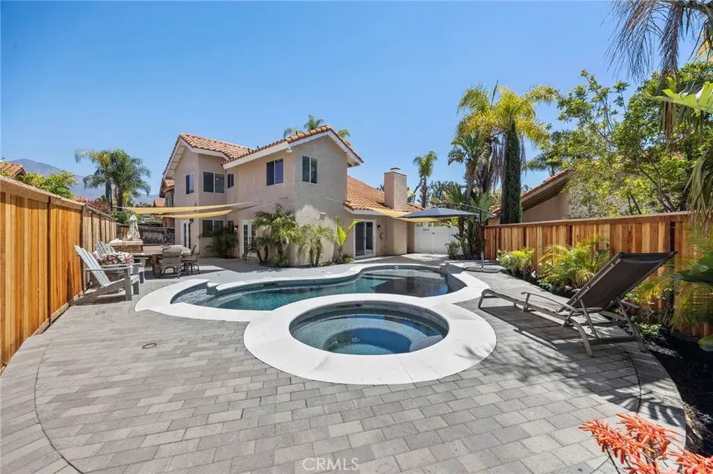 Located in the heart of RSM is a unique opportunity to own a rare, beautifully upgraded 4BD/3BA corner lot showcasing a resort-style backyard, open floor plan, large main floor bedroom with oversized secondary bedrooms, recently remodeled pool & spa, outdoor appliances, built-in seating, fire table and more. The main level features an open floor plan, stylish and durable wood-tile flooring, high ceilings and an abundance of natural light. Upstairs, premium new carpet has been installed in the oversized bedrooms, that have been expanded outward from the original floorplan. The backyard is a private oasis, updated with stone coping, new pump/heater and a sparkling mini-pebble finish for maximum beauty and comfort. The pool & spa can be controlled from your phone (or from a remote in the kitchen) - have the hot tub ready after a long day at work! A custom outdoor fire table creates the perfect relaxing space to enjoy with family and friends at night, while sun shades keep you cool during the day. Additional upgrades include a new recessed lighting, cozy fireplace, new ceiling fans in every bedroom, large pantry, French doors leading to the backyard, expanded garage storage closet, epoxy garage flooring and a dedicated workbench with tool wall. Located near the RSM Lake, Beach Club, award-winning schools, shopping, dining, parks, and scenic hiking and biking trails. This exceptional home offers comfort, style, and the very best of Orange County living!