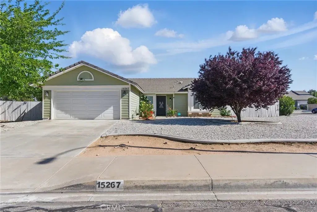 Southwest Hesperia doll house. This charming home is 1210sf (3 rooms) 2 beds + office or optional 3rd bedroom without a closet, 2 bath plus a large 18,000sf corner lot. As you enter the home you are greeted with a spacious dining area, upgraded paint and wood look laminate flooring that lead to all the living areas. The kitchen includes white cabinets, stainless steel appliances and a pantry area. Living room includes vaulted ceilings, brick fireplace plus french doors leading to the backyard The 3 rooms are perfect for a family, master bedroom includes vaulted ceilings, additional windows for natural lighting and a full bathroom. The home is equipped with tile roof, central heat and a/c plus a google nest learning thermometer. This huge backyard has endless possibilities. Enjoy a large vinyl patio cover and a extra concrete extension of the patio area, fruit trees, double swinging gate plus a Automated rachio auto sprinkler/drip system. The backyard has room for a pool and a ADU.