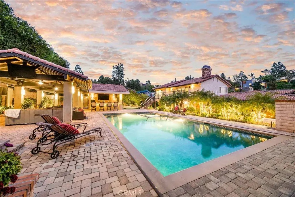 *Seller is open to contributing concessions toward buyers closing costs or an interest rate buydown with the right offer.* Experience the ultimate in resort-style living in a home designed to be the destination everyone loves to gather. Located in the heart of North Tustin, this sprawling 5-bedroom, 5-bathroom estate sits on half an acre of lushly landscaped paradise. A jaw-dropping backyard designed for next-level entertaining. Dive into the oversized saltwater pool and spa, enhanced by cascading water features. The automated pool cover keeps the temperature warm year-roundpool parties in December. Unwind in one of the multiple covered patio areas, each with automatic canopies for shade, outdoor fans, and ceiling heaters for cooler evenings. Grill like a pro with two high-end stainless-steel BBQs in your fully equipped outdoor kitchencomplete with a fridge, freestanding freezer and sink. Sports fans can catch every game under the stars with outdoor TVs and smart built-in audio system surround. The pool house has a full bathroom and lounge area- you could practically live in your backyard. Inside, the magic continues. The partially open galley kitchen offers prep space and casual dining with views of the front yard. The layout flows effortlessly into the formal dining area and cozy family room, both with easy access to the backyards covered lounge area. The main level includes three spacious bedrooms and a home theater. Above the main level, an expansive primary retreat that opens directly to the backyard. Your spa-like ensuite has dual vanities, a walk-in shower, sunken tu