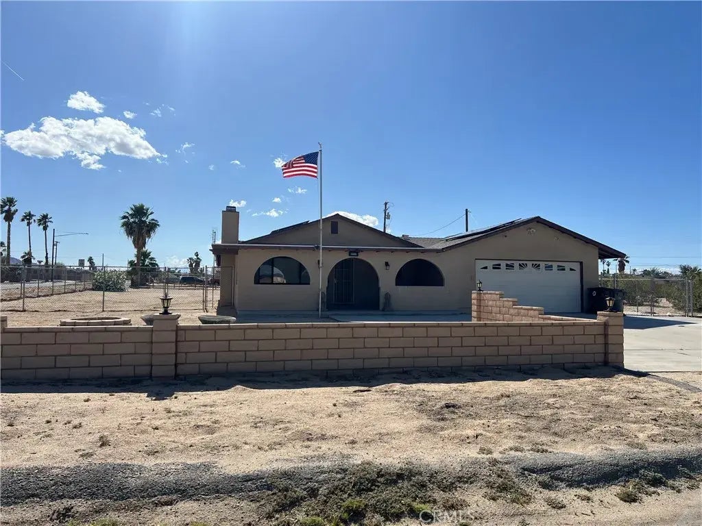 This 3 bedroom, 2 bath home has views of the mountains & desert and sits on a little less than half an acre of land! This home has a lot of room to park an RV or boat on the side. The back yard patio is covered with a side gate entrance and there is a convenient 2 car garage and also has Tesla solar panels for being energy efficient! Please note the refrigerator, washer and dryer are not included in the sale. This place is a must see, and a great place to call home or keep as a rental property!