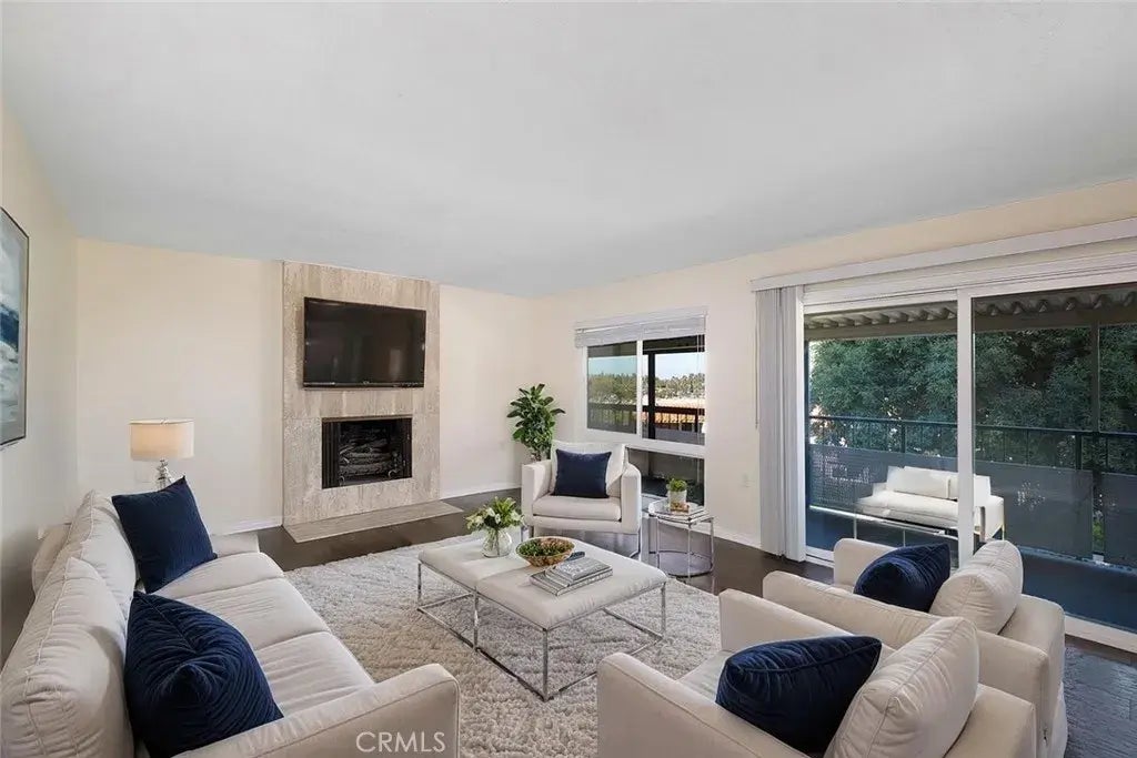 Nestled in a prime location within the vibrant 55+ Laguna Woods Village, this beautifully upgraded La Brisa end unit offers stunning PANORAMIC VIEWS of the Saddleback Mountains, lush green hills, and twinkling city lightsall from your expansive wrap-around, covered balcony. With NO STAIRS INSIDE and ONLY 8 steps to the front door, accessibility meets elegance in this serene and inviting space. Step inside the spacious 1,145 sq. ft. manor and be greeted by a beautifully tiled entry foyer, featuring a skylight, hall closet, and recessed lighting. The generously sized living room boasts rich dark wood flooring, smooth ceilings, and a cozy fireplacean AC unit, perfect for relaxing or entertaining guests. The adjacent dining area offers plenty of room for meals or morning coffee while you soak in the beautiful sunrise views. The bright and functional kitchen features a filtered water system, freestanding electric range, built-in microwave with hood, ample white cabinetry, a spacious pantry, and a window above the sink that lets in natural light. You'll also enjoy modern conveniences such as a dishwasher, garbage disposal, and plentiful counter space. The large primary bedroom includes a warm coat of paint, window treatments, and a HUGE closet areaideal for storing seasonal clothing and accessories. A second skylight brightens the en-suite bathroom, which features a NEWLY updated private shower, toilet, and vanity area with mirror and sink. A second bedroom offers versatile space for guests or a home office, with a window and blinds for added comfort. The adjacent full hallway ba