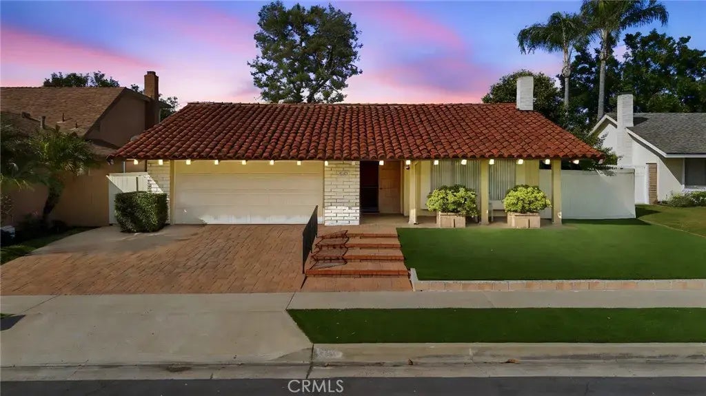 Opportunity Knocks in "The Ranch", Irvine! This spacious 6-bedroom, 3-bathroom home (WITH PAID OFF SOLAR) is located in one of Irvine's most desirable neighborhoods, offering a rare chance to bring your vision to life. This property is ideal for multi-generational living, large families, or savvy investors looking to renovate and add value. Step into a warm and inviting living space that exudes potential and charm. The spacious living room features dramatic vaulted ceilings with exposed wood beams and a statement fireplaceready to be transformed into a cozy showpiece. Natural light floods the room through a large front-facing window, complemented by vintage-style curtains and classic tile flooring at the entryway. The adjacent kitchen opens into a flexible dining area and offers ample cabinet space and a functional breakfast bar overlooking the room. A mix of laminate and tile flooring helps define the space, while large windows and sliding doors provide seamless indoor-outdoor flow. While the finishes are dated, the layout is highly functional and ready for your custom touchperfect for those looking to modernize while maintaining a warm, homey feel. The expansive covered patio features beautiful archways adorned with hand-painted floral details and traditional terracotta tile flooringperfect for entertaining or enjoying your morning coffee in the shade. The transparent roof panels allow for natural light while providing protection from the elements year-round. Beyond the patio, the yard offers a mix of low-maintenance artificial turf, paved walkways, mature landscaping, an