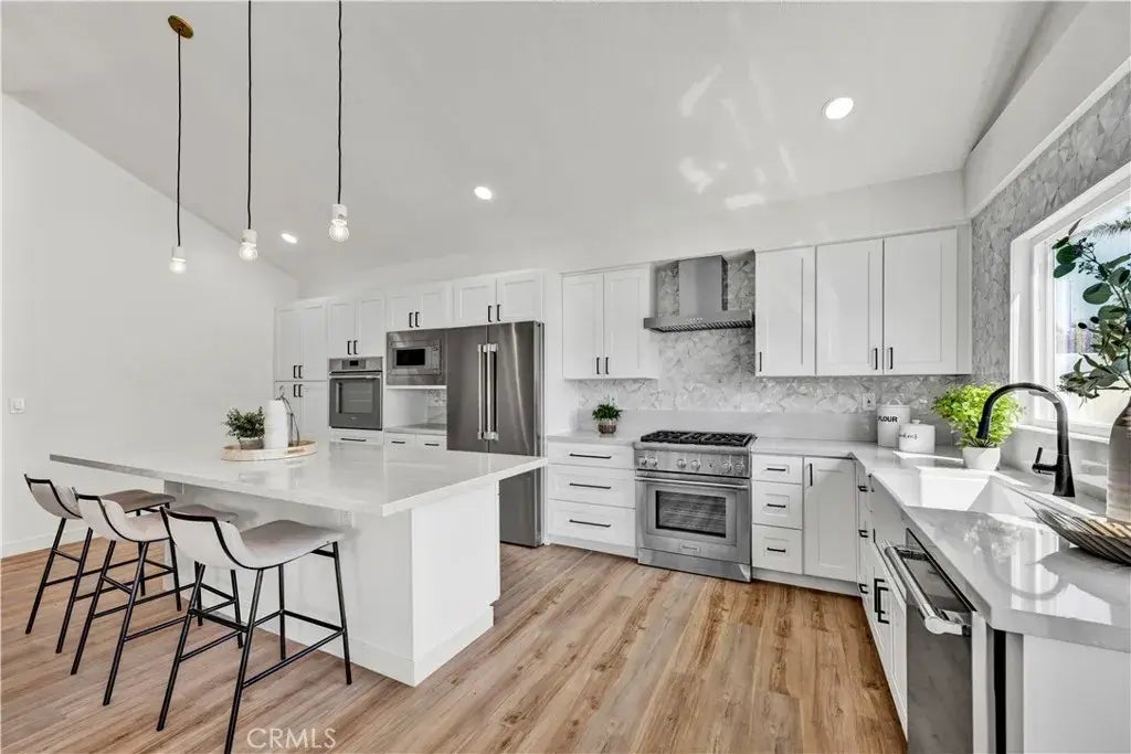 Just like a brand-new model-perfect home, best deal in Town. This stunning Park Place masterpiece has been exquisitely transformed with no expense spared, showcasing 2,263 square feet of contemporary elegance. Every inch radiates luxury, from the luxury waterproof wood vinyl flooring and LED recessed lighting throughout to the dual-pane windows (some with built-in blinds), two-panel interior doors, and mirrored closet doors. A dramatic staircase with a sleek horizontal steel railing adds a modern touch, while the brand-new chefs dream kitchen dazzles with quartz countertops, a center island with wrap-around seating, chic pendant lighting, custom white shaker self-closing cabinetry (including pots & pans drawers, pull-out pantries, and lazy Susans), a porcelain farmhouse sink, and top-of-the-line Thermador stainless steel appliancesincluding a gas range, microwave, oven, warming drawer, and dishwasher. The grandeur begins at the wood and frosted glass entry door with matching sidelight, leading to an impressive living room with a soaring two-story ceiling and a transom window flooding the space with natural light. The open layout flows effortlessly into the dining area and a warm, inviting family room with a fireplace, while sliding glass doors open to an expansive backyard featuring a large concrete patio, new lawn, lush landscaping, stucco walls, and a permitted detached hobby room/office with electricalideal for entertaining or future pool possibilities. This home offers two luxurious primary suites (one upstairs, one downstairs), with the upstairs retreat boasting a walk