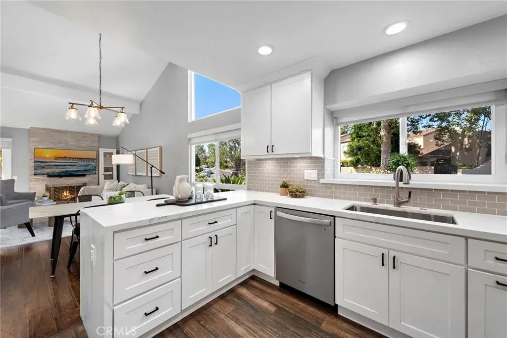Welcome to this stunningly updated 3-bedroom, 2-bathroom attached single-family residence nestled in the desirable Aegean Heights community. This rare corner unit boasts an abundance of natural light, vaulted ceilings, and a spacious single-level floor plan perfect for comfortable living and effortless entertaining. Step into the beautifully remodeled kitchen featuring sleek quartz countertops, a classic subway tile backsplash, under-cabinet lighting, and stainless steel appliances. Rich laminate flooring flows throughout the home, offering a warm contrast to the light, modern finishes. The cozy living room centers around a stone fireplace and opens seamlessly to a private yard through sliding glass doorsideal for indoor-outdoor living. Retreat to the primary suite complete with a walk-in closet and an upgraded bathroom showcasing a designer vanity and a marbled shower. The home also features dual-paned windows, a serene central atrium perfect for a quiet escape, and a two-car garage with direct access for added convenience. Located in a meticulously maintained community with no Mello-Roos, the HOA dues include access to premium amenities such as tennis courts, a clubhouse, a sparkling pool, a separate gated kiddie pool, roof and exterior paint coverage, and common area maintenance. Dont miss this turnkey gem in one of the area's most sought-after neighborhoods!