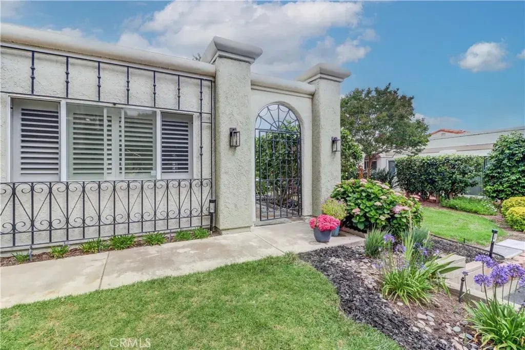 Luxury living in Laguna Woods - Just named one of the top 10 retirement towns in California by WorldAtlas! Expanded and remodeled end unit "Casa Rosa" with 1 car garage located on a beautiful single loaded, elevated street with added 3rd room, expanded kitchen and inside laundry room. Beautifully landscaped surroundings including a new tree being planted by the HOA in the front yard within the next few weeks. Enter through the modern front door with retractable screen and you'll immediately notice a few of the great upgrades - hardwood floors, smooth ceilings, solid core interior doors, dual pane windows/sliders, upgraded electrical outlets and central HVAC with Nest thermostat. The inviting living room features high ceiling, white stackstone faced fireplace, contemporary light fixture and zebra shades on the living room sliding doors. Large back patio protected by a vinyl cover, rod iron fence and is accessible from both bedrooms plus living room. The patio faces east so you'll enjoy the morning sun! Back inside, check out the expanded kitchen featuring Thomasville custom cabinets with a few glass fronts, huge skylight, quartz waterfall countertop, glass subway backsplash, undercabinet lighting and upgraded stainless appliances. The kitchen now wraps around the corner for extra storage to create a perfect place for the built-in oven, beverage refrigerator and pantry. Don't miss the inside laundry room with newer side by side washer/dryer, laundry sink, water heater and wall mounted drying rack. Step out to the garage with epoxy flooring - it is smaller than original garage