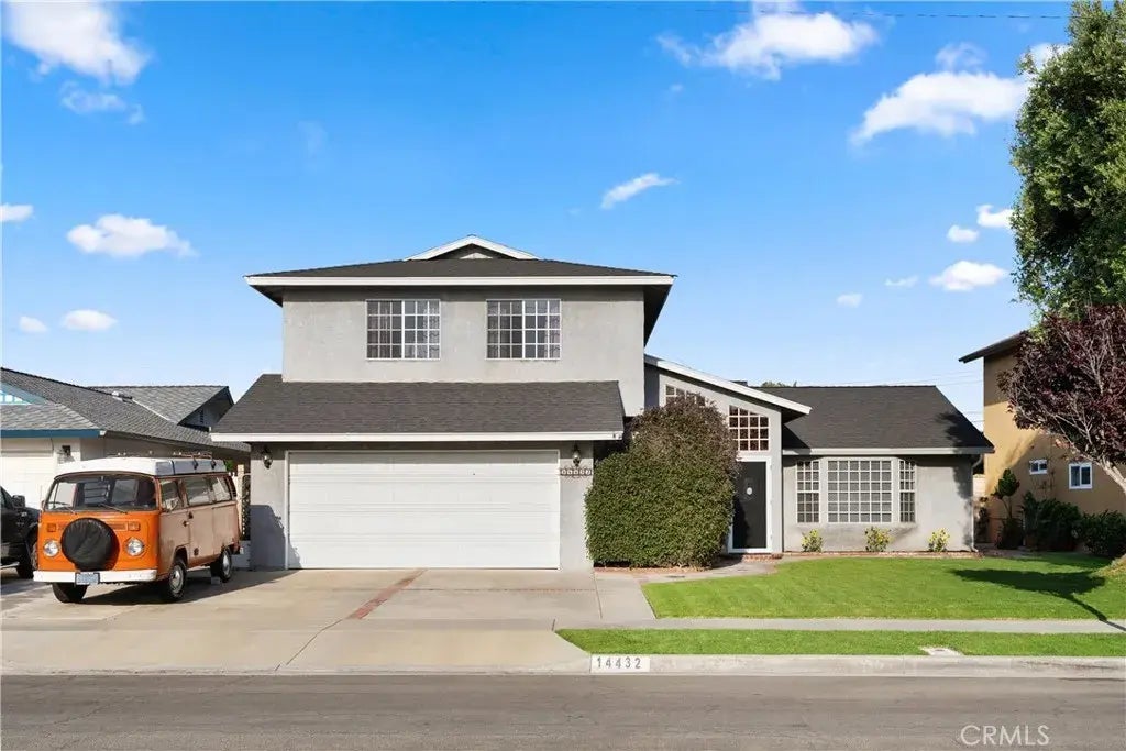 Spacious 5-Bedroom Home in Prime Huntington Beach Location Welcome to 14432 Elmhurst Circle, a beautifully expanded and well-maintained two-story home nestled in a desirable Huntington Beach neighborhood. This spacious 5-bedroom, 3-bath residence offers flexibility, comfort, and stylish features perfect for modern family living and entertaining. The first floor includes three generously sized bedrooms and 2 bathrooms, ideal for multi-generational living or guest accommodations. Upstairs, youll find two additional bedrooms connected by a convenient Jack and Jill bath, providing a private retreat with thoughtful design. The heart of the home is the open-concept kitchen, featuring granite countertops, wood cabinetry with raised panel doors, and its own window for natural light and ventilation. The kitchen opens seamlessly to the dining area, which is ideally situated between the family room and the converted formal living room, now a stylish game room that includes a pool tableyours to keep with the home. The expanded family room is a standout, showcasing a beamed ceiling, skylight, and cozy fireplace. French doors with opening side light windows lead to a large patio, perfect for indoor-outdoor living and entertaining. A corner wet bar with sink adds functionality and flair to this welcoming space. Additional features include an attached garage with a built-in workbench, extensive shelving for storage, and a garage door opener for added convenience. Situated on a quiet cul-de-sac, this home offers the best of Southern California living with easy access to beaches, shopping, p