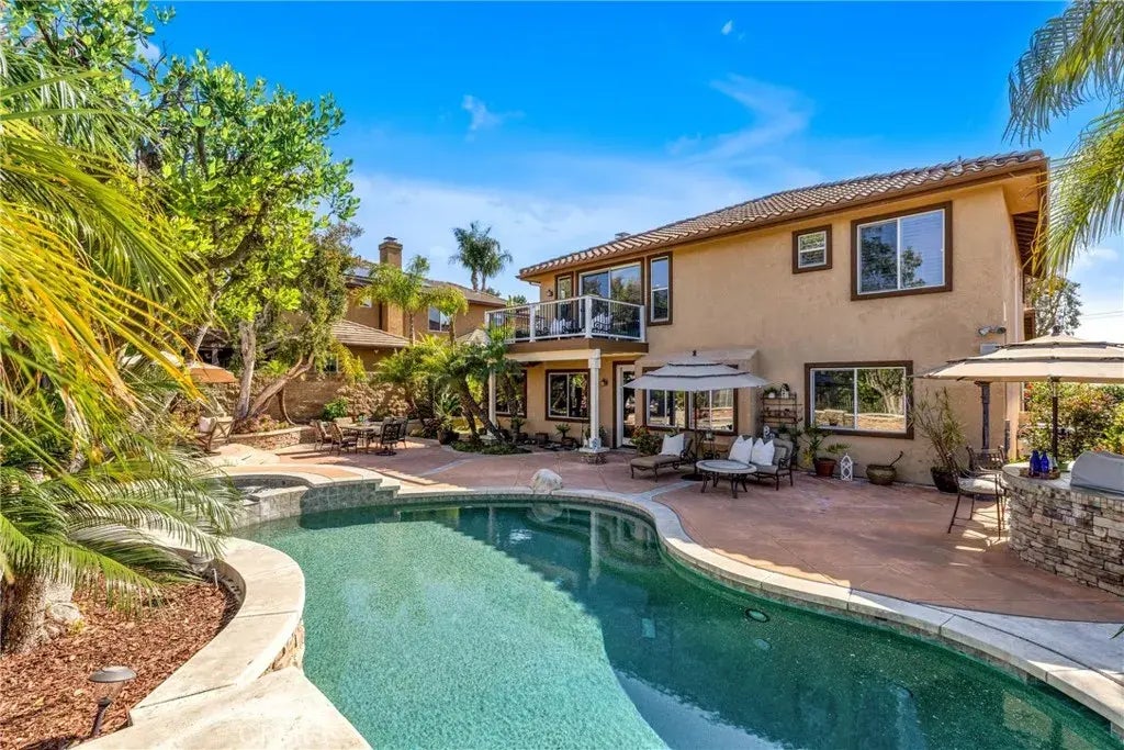 FABULOUS VIEW HOME WITH POOL & SPA IN THE GATED COMMUNITY OF STONERIDGE! This is the one youve been waiting foran extraordinary Greystone Point residence offering the perfect blend of luxury, comfort, and panoramic views in one of Mission Viejos most prestigious gated communities. Rarely available and highly sought-after, this expansive home is designed for both elegant entertaining and everyday living, with five bedrooms, four and one-half baths, and a flexible hobby/TV room that can be adapted to your lifestyle. The floor plan includes a highly desirable downstairs en-suite bedroomideal for guests, multigenerational living, or a private office. Formal living and dining areas set the tone for sophistication, while the heart of the home is the recently remodeled chefs kitchen. Complete with a generous center island, high-end stainless steel appliances, built-in refrigerator, wine fridge, and a walk-in pantry, the kitchen opens to a sunny casual dining nook and a spacious family room featuring a focal-point fireplace and large picture windows showcasing the backyard and expansive views. Step outside and discover your own private resort: a sparkling pool and spa, built-in BBQ, lush landscaping, and multiple seating and entertaining areasall positioned to take full advantage of sweeping views of the surrounding hills, canyons, and Saddleback Mountain. The seamless indoor-outdoor flow creates the ultimate California living experience. Upstairs, the grand primary suite offers a peaceful retreat with a private viewing deck, two walk-in closets, and a luxurious spa-inspired bathro