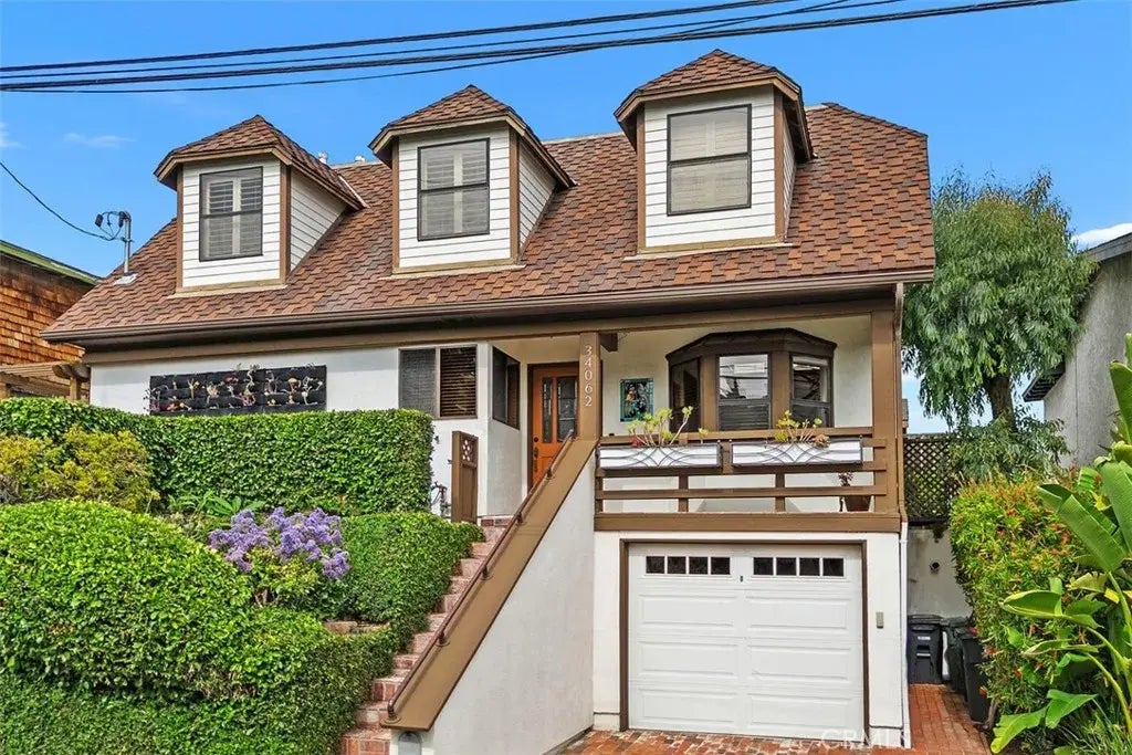 Situated in the heart of Dana Point, this one-of-a-kind 3-bedroom, 2-bath home spans over 1,900 square feet and offers a warm blend of character, craftsmanship, and coastal charm. From the moment you step inside, you're greeted by dramatic vaulted ceilings, exposed beams, and striking architectural angles that lend a custom feel throughout. The main level consists of 2 bedrooms, a bathroom, and the main living areas. The centerpiece of the home is a stunning open-air loft upstairscomplete with ocean views and rustic wood trussesmaking it the perfect flex space for a home office, media room, or creative studio. The kitchen is both functional and stylish, featuring rich wood cabinetry, granite countertops, butcher block countertops, and a unique brick accent wall. The living room is anchored by a cozy stone fireplace and mirrored accent wall, while French doors invite natural light and connect seamlessly to the outdoor patio. Upstairs, the primary bedroom showcases vaulted ceilings, exposed beams, and large plantation-shuttered windows that frame ocean views, creating a peaceful coastal retreat. The primary bathroom has been tastefully updated with dual sinks, modern fixtures, and a walk-in shower. Warm-toned hardwood and terracotta tile flooring carry throughout the home, adding to its timeless appeal. A single-car garage and private driveway adds convenience, while the prime location places you just minutes from Dana Point Harbor, local beaches, restaurants, and shops. This is a rare opportunity to own a uniquely designed home that captures the essence of coastal Southern C
