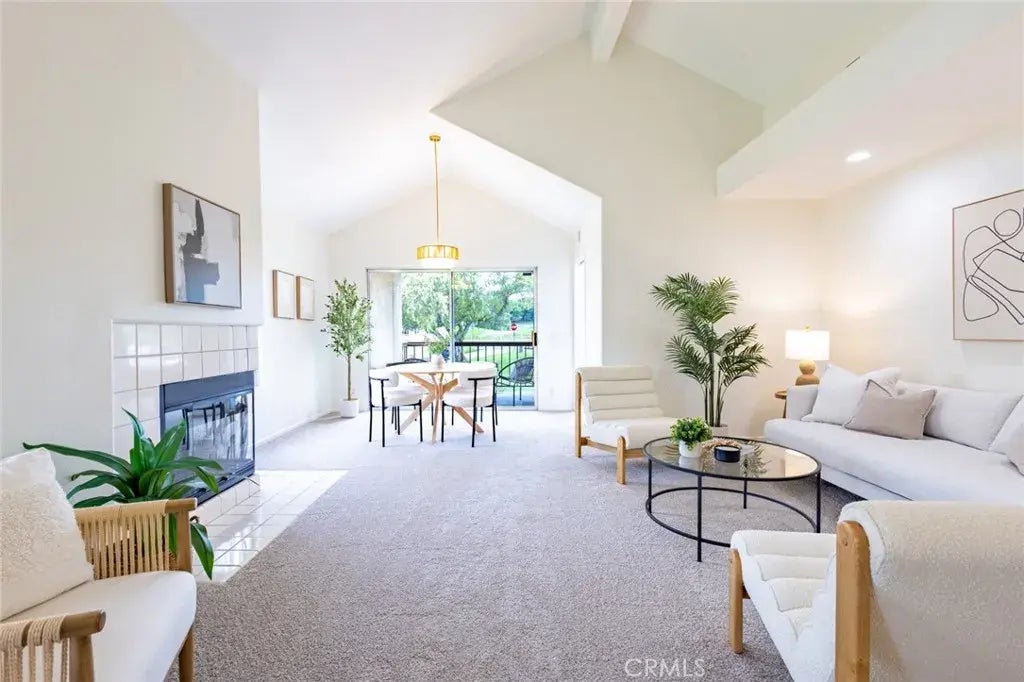 Experience breathtaking Tijeras Creek Golf Course views from this inviting 2-bedroom, 2-bath condo. The living space is bright and airy, featuring high ceilings, abundant natural light, and a cozy fireplace. Sliding doors open to a private patio where you can relax and enjoy the quiet, serene surroundings. The spacious kitchen also captures the scenery, with brand-new stainless steel appliances and plenty of room to cook and gather. Fresh paint and plush new carpet add to the homes move-in ready appeal. Views of nature can be enjoyed from nearly every room, including the tranquil primary bedroom. This retreat features vaulted ceilings, generous closet space, and a large ensuite bathroom. A second bedroom and full bath offer flexibility for guests or a home office. Practical features include an attached garage with direct access, a second detached garage for storage or an additional vehicle, and a dedicated laundry room with a full-size washer and dryer. The community offers resort-style amenities such as a sparkling pool, spa, and beautifully landscaped grounds. Nearby Rancho Santa Margarita Lake provides lakeside paths, parks, tennis, pickleball, and miles of hiking and biking trails. This home combines natural beauty, modern comfort, and a peaceful setting in a highly desirable community.