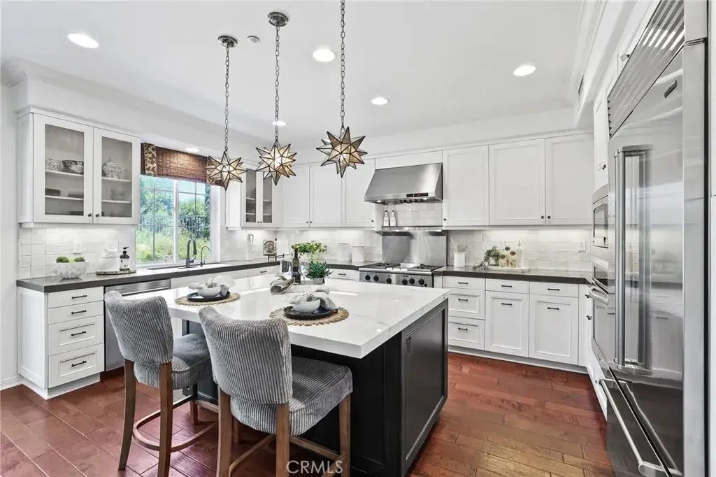 Tucked away at the end of a quiet cul-de-sac on a coveted corner lot in the prestigious gated community of Kensington Estates, this exceptional residence welcomes you with a sweeping driveway and timeless curb appeal. But the true magic begins before you even step insidewithin a reimagined backyard that captivates with panoramic views. More than just an outdoor space, this sanctuary inspired retreat is a lifestyle experience. Dine under the covered patio, unwind as the sun dips below the horizon. Inside, soaring ceilings and abundant natural light elevate the grand living room, creating an atmosphere of warmth and sophistication. A dedicated office provides a quiet space for work or study, while a downstairs guest bedroom and full bath offer ideal accommodations for visitors. A spacious laundry room adds convenience to daily living. At the heart of the home, the open-concept family room and kitchen seamlessly blend form and function, anchored by a cozy fireplace. Recently remodeled, the kitchen is a showcase of fine craftsmanshipfeaturing white cabinetry, quartz and porcelain countertops, and top-tier appliances from Sub-Zero and KitchenAid. An oversized microwave, second oven, and advanced reverse osmosis water system complete this chefs dream space. Upstairs, five generously sized bedrooms await, including a luxurious primary suite that exudes refined elegance. Enjoy a private balcony, plush carpeting, walk-in closet, and a spa-inspired bath with a whirlpool tub, custom-tiled walk-in shower, double vanities, a beauty bar, and even a private exercise room. Secondary bedroo