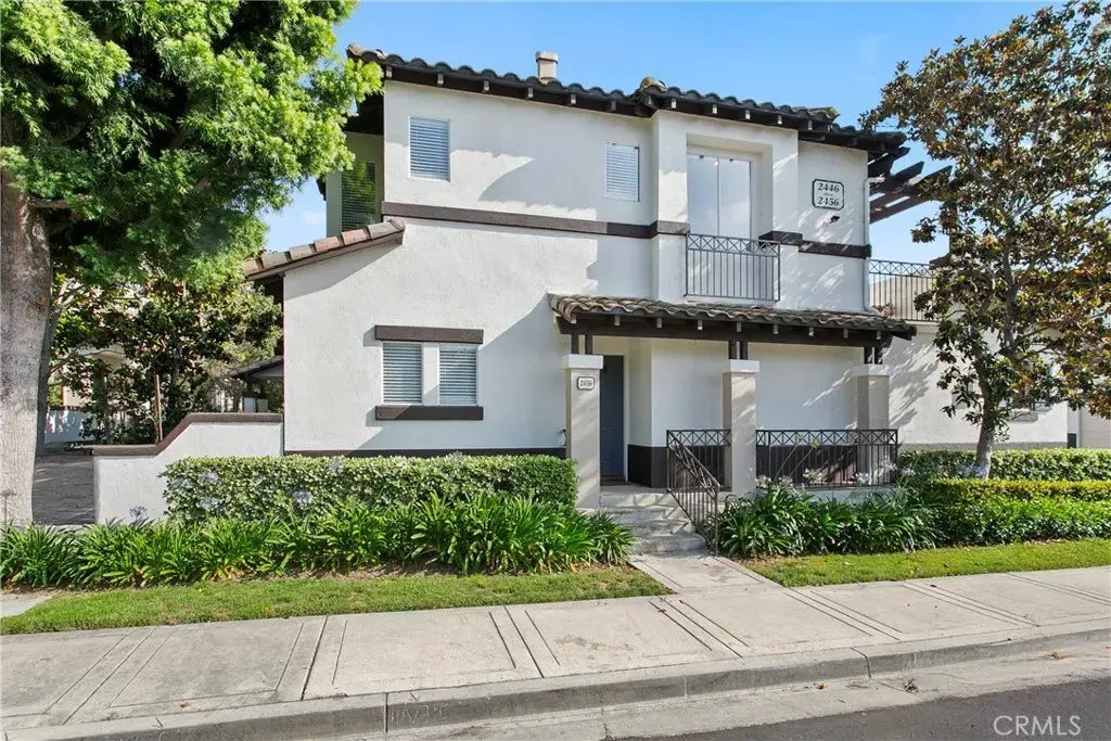 Recently updated from floor to ceiling, this beautifully upgraded 2 bed, 2.5 bath end-unit condo is nestled in the highly desirable Tustin Ranch neighborhood of The Orchards. Rarely available and full of charm, this light-filled 2-story home features thoughtful finishes, two spacious bedrooms, each with its own en suite bathroom, an updated half bath downstairs, upstairs laundry, and an attached two-car garage. Step into an inviting living room with fresh neutral flooring and paint, recessed lighting, and a cozy fireplace. The kitchen has been tastefully remodeled with quartz countertops, crisp white cabinetry, built-in trash, a sleek stainless steel range hood and appliances, and recessed lighting. The open-concept layout seamlessly connects the kitchen, dining, and living areas, perfect for entertaining. Outside, relax on the large private patio and enjoy your peaceful outdoor space. Upstairs, the primary suite offers vaulted ceilings, hardwood flooring, a ceiling fan, and a walk-in closet. The en suite bathroom is a luxurious retreat, featuring a dual-sink quartz vanity, walk-in shower with designer finishes, and upgraded lighting and fixtures. The generously sized secondary bedroom features new carpet, a ceiling fan, and its own en suite bath with quartz vanity, tub/shower combo, and updated hardware. Additional features include an upstairs laundry area with a new washer and dryer set, built-in storage, and a finished two-car garage with cabinets and racks for added organization. A newly installed central A/C and heating system ensures year-round comfort. Enjoy the comm