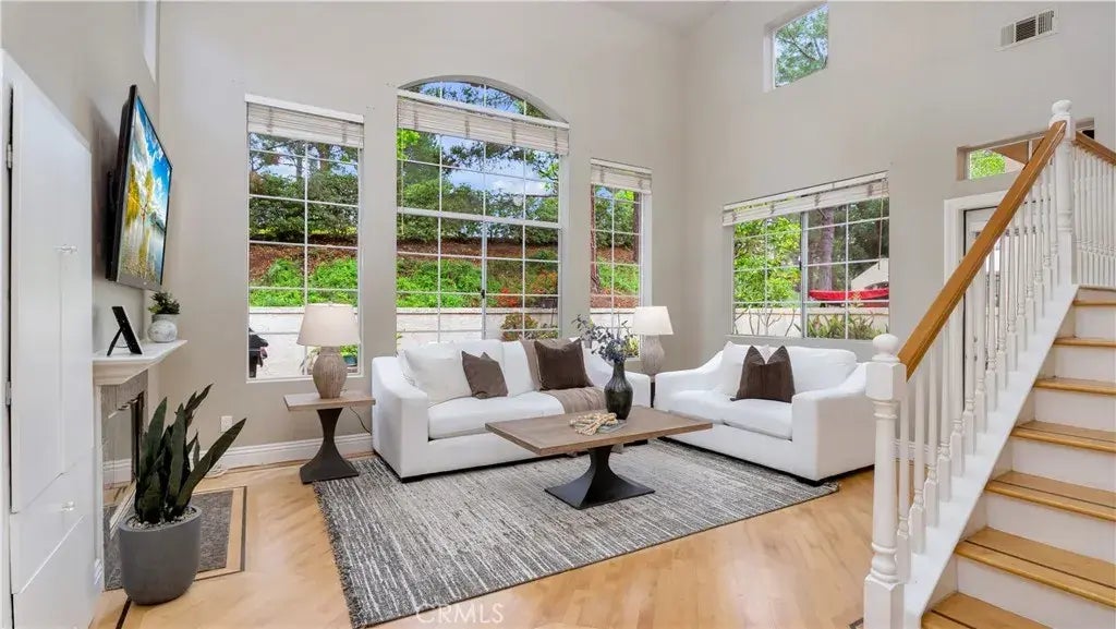 ALL NEW WHITE PAINT THROUGHOUT- clean perfect and so bright and beautiful!!! Amazing, amazing 3 bedroom 3 bath townhome with 1 bedroom downstairs! The location is perfect - quiet and tucked away with a glorious big patio that wraps around this beautiful end unit. There's room for outdoor dining, a seating area, and room for a garden and plants! A wonderful secluded private and quiet space space you will LOVE! The downstairs bedroom has direct access to the yard and could also be a great office. There's a giant family room with fireplace, soaring ceilings and loads of windows and light. The remodeled kitchen is open to the dining area, there's inside laundry and a direct access 2 car garage! Upstairs you'll find 2 master suites, lots of closet space, bright and open with everything you need for comfortable living. This peaceful complex is close to amazing schools and association amenities. Beautiful Altisima Park is a short walk for large grassy area and big association pool. This is an amazing rental in great condition with lots of nice upgrades. Bring those perspective tenants over to see this great property!