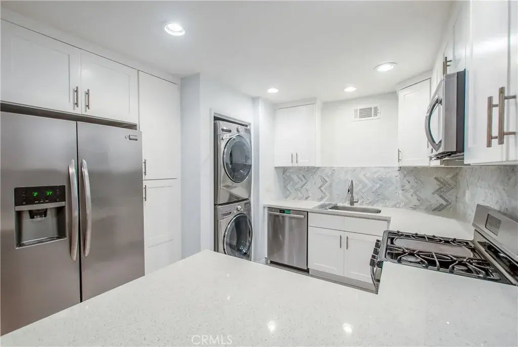 Discover your next dream home with this charming 3-bedroom, 2-bathroom, nestled in the sought-after Huntington Townhome community. Offering just under 1,000 sq ft of living space, this end-unit bungalow is conveniently located no more than 1.5 miles from the sandy shores of the beach (Bolsa Chica State and Sunset Beach), offering the perfect blend of comfort, lifestyle, and location. As you enter, you're welcomed by an abundance of natural light, showcasing the hard-surface flooring that extends throughout the living areas. Retreat into one of the three inviting bedrooms, all of which boast brand-new carpeting for that added layer of comfort. The upgraded kitchen acts as the heart of the home, gleaming with quartz countertops, stainless steel appliances, and stylish white shaker cabinets. An intricately designed herringbone tile backsplash adds an extra dash of elegance to the space. The full-sized stackable washer/dryer can be found inside as well! The refreshing ambiance continues into the two updated bathrooms, further enhancing the home's modern appeal. Comfort is always a breeze with ceiling fans installed in every bedroom as well as the dining area, ensuring an airy atmosphere throughout the seasons. Stepping outside, you will find a spacious back patio, complete with a brand new Trex deck, making it the perfect outdoor retreat for entertaining or simply enjoying a quiet evening under the stars. Parking is never a concern with an assigned spot that includes additional storage, plus ample guest parking available. As part of the community, residents enjoy access to a sp