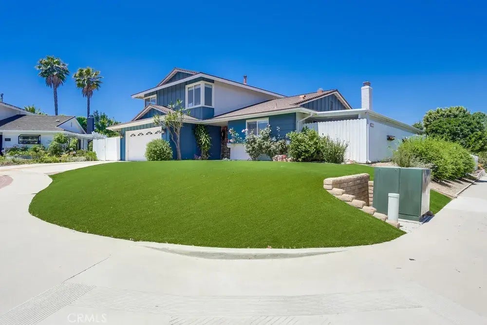 Welcome to 25001 MacKenzie St, a charming two-story home tucked on a spacious corner lot in the heart of Laguna Hills. With great curb appeal, an extended driveway, manicured turf lawn, and a welcoming red double-door entry, this property offers space, character, and the opportunity to make it truly your own. Step inside to find tile flooring and freshly painted walls that create a bright and inviting atmosphere. To the right, a formal dining room sits just off the kitchenperfect for gatherings and meals. The kitchen features upgraded countertops and ample cabinet space. Further down the house leads into a brightly-lit living room complete with a brick-accented fireplace for added warmth, and sliding doors to the patio. Toward the back of the home, a spacious bonus roomideal as a game room, or second living spaceopens to the backyard through additional sliding glass doors. A full bathroom with shower and access to the attached 2-car garage complete the downstairs layout, offering both functionality and flexibility. Upstairs, youll find the three well-appointed bedrooms, including a primary suite with direct access to a shared bathroom. All bedrooms are well-sized, feature windows for natural light, and closets for ample storage. Step outside to discover the homes true potential. The backyard offers a generous mix of patio space and greenery, with a large side yard that expands the usable outdoor square footage dramatically. Fruit trees and mature vegetation add life and privacy to the space, making it ideal for entertaining, gardening, or relaxing. With plenty of room to cu