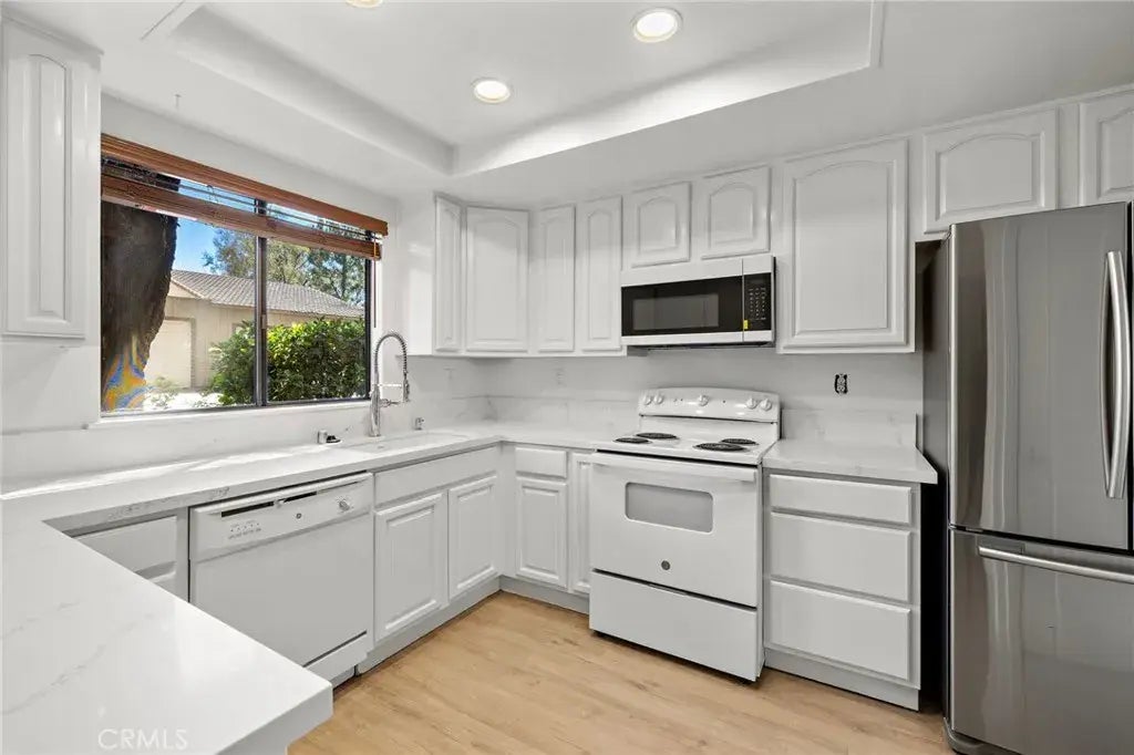 Welcome to 31291 East Nine Drive #29F, a beautifully upgraded 3-bedroom, 2-bath ground-level condo in the highly desirable East Nine community of Laguna Niguel. This light-filled home features an open-concept dining and living room layout with fresh updates throughout, including new quartz kitchen countertops, a deep single-basin sink with designer faucet and soap dispenser, new garbage disposal with air gap and a brand-new microwave. The ceilings have been refinished to remove the acoustic texture, and the entire interior, including the kitchen cabinets, has been freshly painted for a clean, modern look. The primary suite also enjoys direct patio access, a large closet, and an en-suite bathroom, while two additional bedrooms and an upgraded guest bath complete the interior. The spacious living and dining area is bathed in natural light because it is an end unit and flows seamlessly to the patio, offering relaxing views of the lush greenery and distant fairways of El Niguel Country Club. The HVAC system has been serviced and includes a new thermostat. The sliding door screens have been replaced which provide easy access to the expansive covered patio off the living room, primary and second bedrooms. Residents of East Nine enjoy resort-style amenities including a sparkling pool, spa, picnic areas with BBQs, and peaceful walking paths surrounded by mature trees and manicured landscaping. All of this is in an unbeatable location just minutes from world-class beaches, Dana Point Harbor, top-rated schools, shopping, and dining.