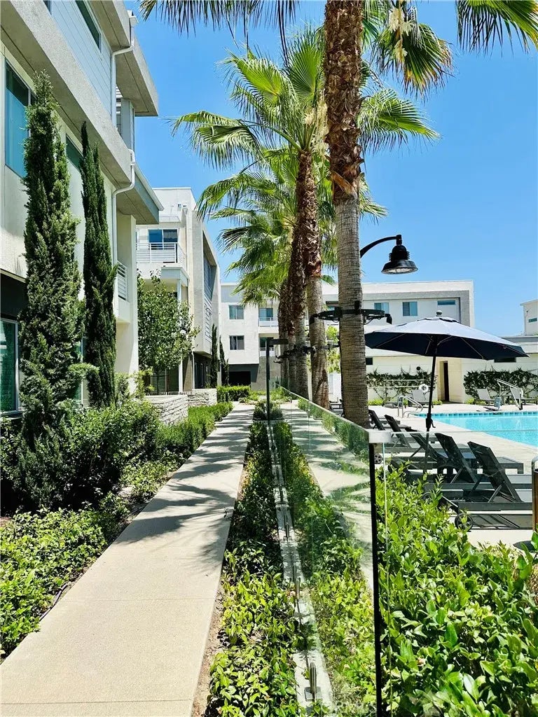 Enjoy modern living at the Platinum Triangle in Anahiem. Single level two bedrooms on the third floor. Great location with open floorplan, and lots of sunlight. Great room with gourmet kitchen appointed with granite countertops, upgraded appliances and ample cabinet space. Large living room open to balcony perfect for outdoor living. Oversized master bedroom with comfortable and spacious master bath and walk-in closet. Second bedroom with full second bath. Inside laundry with ample storage space.Upgraded with laminate flooring, neutral paint and carpeting . Two side by side garage and extra storage. HOA amenities include pool, jacuzzi and locker room for deliveries. Minutes from parks, Angel Stadium, Honda Center, the Anaheim Regional Transportation Center, and Disneyland Resort just a short drive away, offering close by entertainment, dining, and shopping options. Easy access to the 5, 57, and 22 freeways, making accessibility and commute easy from and to the heart of Anaheim.