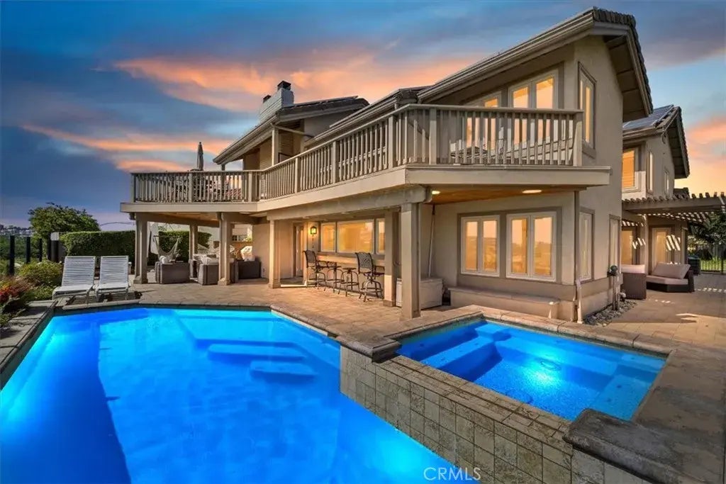 Welcome to this stunning Casa Grande model in the highly sought-after Andalusia tract! This one-of-a-kind home is truly special in so many ways. Ideally located at the end of a peaceful cul-de-sac on an expansive 8,400+ sqft lot, this property offers breathtaking lake, mountain, and city views from nearly every anglefront, side, and backyard. Enjoy over 3,400 sqft of bright, open living space featuring high ceilings, real hardwood floors, and dual-pane windows throughout that beautifully frame the stunning vistas. The home offers 5 spacious bedrooms and 3 bathrooms, including a large living room, a cozy family room, and an open-concept kitchen that overlooks the sparkling pool and surrounding landscape. Upstairs, the luxurious primary suite includes a huge wraparound balcony with direct access to the backyardperfect for morning coffee or evening relaxation with panoramic views. The backyard oasis is designed for both entertaining and serenity: enjoy a dip in the beautifully maintained pool, gather around the fire pit, or unwind beneath the covered and heated patio area as you watch the sunset over the hills. Additional features include paid-off solar panels, helping you save on energy costs, and a short walk to Lake Mission Viejo and the popular Florence Joyner Olympiad Park, offering an unbeatable lifestyle in an unbeatable location. This home is truly one of a kindthanks to its rare combination of views, location, layout, and features. Come see it for yourself before its gone!