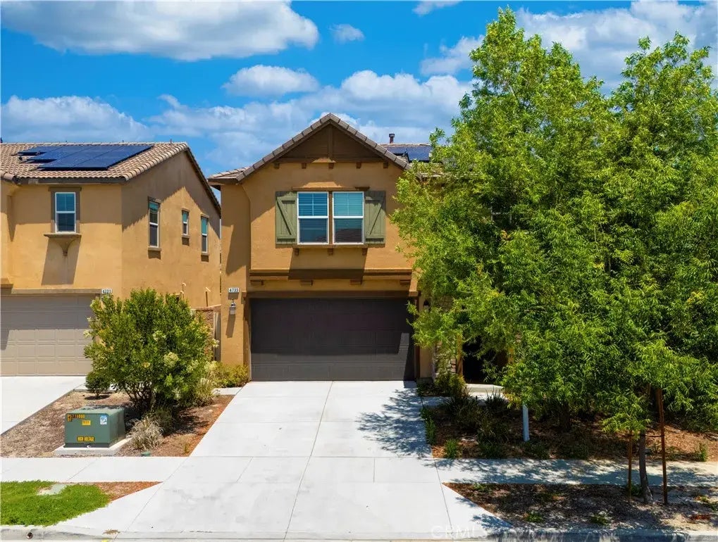 Featuring paid-off solar, this elegant home sits in the desirable Northpark Community of Ontario Ranch. Built in 2019, this Cottage-style two-story residence offers an open-concept layout with a modern kitchen featuring white cabinetry, ash grey quartz countertops, an enlarged island throughout. Downstairs features a spacious great room pre-wired for a flat panel TV and a full bedroom with bathroomideal for guests or multi-generational living. And plus a flex room downstairs provides space for a home office or gym. Upstairs offers a large loft, laundry room with deep sink, and an oversized primary suite with a walk-in closet, dual vanities, soaking tub, and private balcony. The low-maintenance backyard is ideal for relaxing or entertaining. Enjoy walking distance to a local park. Community amenities include BBQ areas, basketball courts, greenbelts, and playgrounds. Conveniently located near Costco, 99 Ranch, and the upcoming Walmart Supercenter, with easy access to the 60 and 15 freeways.