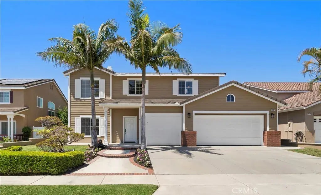 Majestic Hampton Estates dream home, built by Kaufman & Broad in 1998 and beautifully upgraded with a stunning contemporary Euro-style gourmet kitchen and luxuriously remodeled bathrooms, offering 2,876 square feet of exquisite living space with 4 bedrooms plus a spacious loft/bonus room (easily a 5th bedroom), 2.5 bathrooms, and a finished 3-car garage, all nestled on an expansive 7,281 sq ft lot in the heart of one of Fountain Valleys most sought-after neighborhoods, steps to the park and within top-rated school zone. This gorgeous residence seamlessly blends modern elegance with comfortable living, featuring central A/C, volume ceilings, recessed LED lighting, dual pane windows, custom silhouette blinds, rich wood laminate flooring, ceiling fans, quartz countertops, raised panel interior doors, custom moldings, and a new 40-gallon water heater. Enjoy striking curb appeal with lush tropical landscaping and custom hardscape as you enter to a grand open-concept floorplan showcasing an elegant formal living and dining room, an adjacent inviting family room with fireplace and custom built-in lighted cabinetry, and the spectacular remodeled chefs kitchen complete with quartz countertops, center island with seating, chic floating shelves with under-shelf lighting, top-of-the-line stainless steel appliances including a 5-burner gas range w/dual zone air fryer/convection oven, Folitle slant vent-hood w/motion activation, farmhouse sink with a reach-through bifold window to an outdoor buffet counter, and sleek Euro-style lift-up cabinetry that glides open and also conceals small a