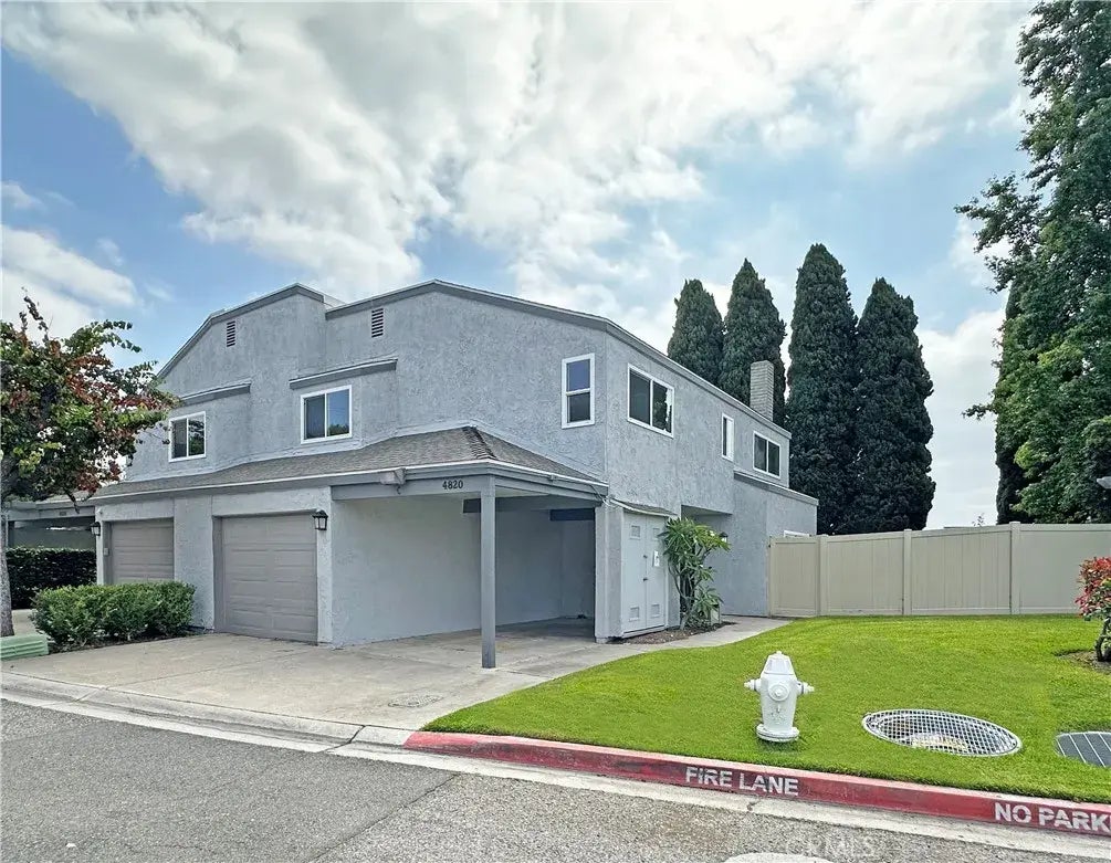 Don't miss this fantastic opportunity to own a beautifully upgraded home in a desirable gated community! The first floor boasts stylish designer tile and an upgraded kitchen with breakfast bar which overlooks into living room, perfect for modern living. Recessed lighting throughout adds a touch of elegance. A convenient first-floor guest bathroom, attached one-car garage, and covered carport provide added value. Upstairs, you'll find three generously sized bedrooms, including a primary suite with a high ceiling, ensuite bathroom, and walk-in closet. Enjoy year-round comfort with central AC and heating. The oversized private patio yard is an ideal space for outdoor enjoyment. The gated community features a pool and jacuzzi for your leisure. With shopping, dining, and the 22 freeway just moments away, this home offers unbeatable convenience. Schedule your showing today!