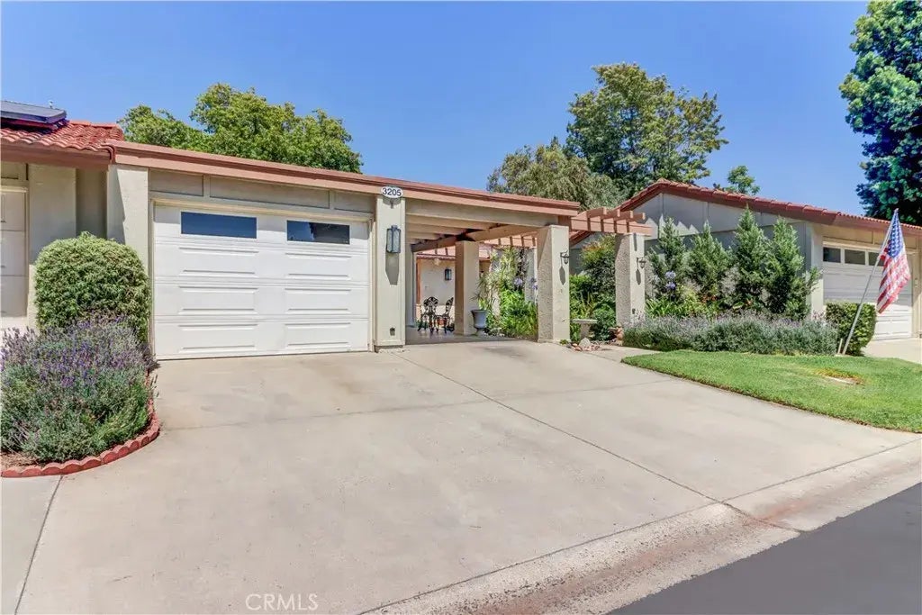 55+ community! 2BD/2BA "El Doble" condo with 1 car direct access garage + 1 large covered carport space + full size driveway - plenty of parking! This great floorplan features 2 primary suites separated by a spacious living room - all enjoying greenbelt views! Walk right up and take note the lush foliage in the front yard. If you love gardening, this home has room to plant or just let the HOA take care of it. Wood front door with stained glass insert invites you in and draws the eye to a beautiful view out the living room windows/sliding glass door. This room can fit a nice bit of furniture, has a ceiling fan and leads out to fenced patio area. Interior upgraded include central heat/air, smooth ceilings and laminate flooring. Dining area has window out to the front patio, a great light fixture straight out of HGTV and bright kitchen with skylight, granite countertops, subway tile backsplash, Kohler sink and added cabinets on the back wall incorporating a stack washer/dryer. There is direct access to the finished, upgraded garage area with recessed lights, ceiling exhaust fan and lots of storage space. Back inside, there is an ensuite bedroom on each side of the living room. Both bedrooms enjoy nice outlooks from the windows, feature mirrored closet doors and skylights in the dressing areas and large walk-in showers (no bathtub). Quiet location - this unit is not right next to El Toro Rd! Laguna Woods Village features championship golf on 2 courses, starter clubhouse with cafe and bar, pickleball, tennis, horse stables, gyms, library, theatre, pools, clubhouses and over 200