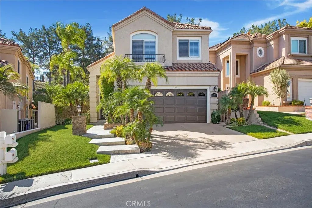 Located in the 24-hour guard gated community of Dove Canyon, this stunning 3-bedroom, 3-bath home has been thoughtfully upgraded throughout. From the minute you enter you are greeted with cathedral ceilings, two story windows and a custom iron staircase. One of the highlights of the home is the newly remodeled kitchen featuring NEW white cabinetry, quartz countertops, a large island with seating for 5, soft-close cabinets, pull-out trash, drawer organizers, new stainless appliances including gas cooktop, microwave, Bosch dishwasher and refrigerator. The kitchen is open to the inviting family room with floor to ceiling stone fireplace embellished with crystal rocks and a perfectly placed TV bracket for the perfect for cozy evenings. The primary suite includes cathedral beamed ceiling, a walk-in closet plus a 2nd additional wall of closet space, an upgraded bath with a frameless glass shower and a soaking tub for relaxing at the end of a long day. The two generously sized secondary bedrooms feature shutters, high ceilings, ceiling fans and ample natural light, providing a comfortable and inviting atmosphere. Double French doors lead to the serene wrap-around backyard featuring artificial turf, a covered patio, and multiple seating areas, lush landscape and stacked stone hardscape, firepit, tranquil hillside views and privacy which is the perfect place to play, entertain or backyard BBQs. The home has been meticulously cared for and also includes almost new AC, new water heater, whole house fan, recessed lighting, custom window treatments, an inside laundry room complete with