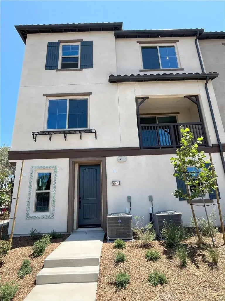 Welcome to this stunning modern tri-level home in the GATED Mirasol community! This brand-new, energy-efficient Plan 2 offers 2 bedrooms, 2.5 bathrooms, and 1,373 square feet of thoughtfully designed living space, complete with an attached 2-car tandem garage. Upon entering, you're welcomed by a bright foyer with a convenient storage closet and direct garage access. As you ascend to the main level, you'll discover an open-concept living area featuring a charming balcony, perfect for entertaining or relaxing in the fresh air. The beautifully appointed kitchen boasts white shaker cabinets, a large island with quartz countertop, and LG stainless steel appliances, including a range, microwave, dishwasher. On the third level, you'll find two spacious bedrooms, each with its own en-suite bathroom. This level also includes a stacked laundry room for added convenience. Centrally located near schools, parks, and more, with easy access to the I-10 and I-605 freeways, offering a smooth commute to both DTLA and Orange County.