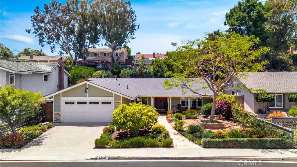 Nestled in the coveted heart of Mission Viejo, this captivating Craftsman-style single-story residence is more than just a house; it's a place to create lasting memories. From the charming front yard and patio, step through the double doors into a world of comfort and elegance. Imagine entertaining in the expansive living room, complete with a sophisticated wine refrigerator and bar area. Cozy evenings await in the family room, anchored by a warm fileplace. The adjacent dining room flows seamlessly into a stunning kitchen boasting beautiful wood shaker-style cabinets, gleaming granite countertops and convenient bar seating. Discover three generously sized bedrooms down the hall, alongside a tastfully remodeled bathroom. The primary suite is a true retreat, featuring a stylish ensuite bathroom with walk-in shower. The magic doesn't stop there! The backyard is an entertaininger's paradise, featuring a sparkling pool, relaxing spa, and multiple gathering spaces including a built-in BBQ pit and a countertop bar. There is a dedicated laundry room with washer/dryer and garage access with added storage. Benefit from low to no-cost power bills thanks to installed solar panels. Located within walking distance to top rated DePortola Elementary School & MVHS, restaurants, shopping and the scenic Oso Creek Trail. You'll enjoy the best of Mission Viejo living, including access to Lake Mission Viejo! Don't miss the chance to living in this extraordinary home.