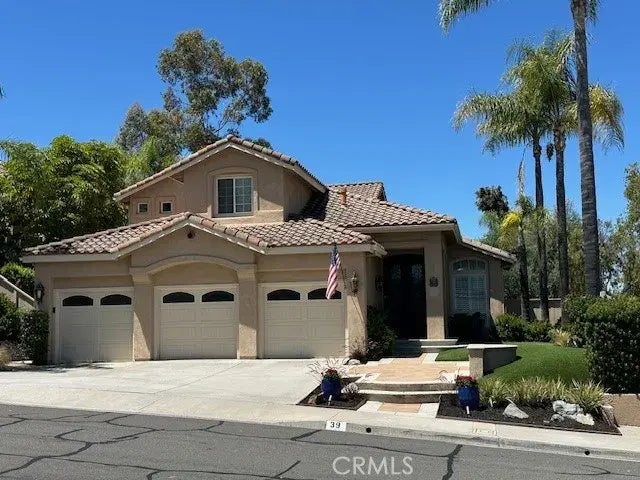 Your dream home awaits you at 39 La Purisima in RSM. This lovely home is filled with quality & luxurious amenities with a private rear yard with Spa, BBQ, Covered Detached Patio & sitting areas & breathtaking sunset views. Inside youll find cathedral ceilings and many custom built-in features. The entrance has a double Iron/Bronze entry door with operable screen windows. The home features 4 Bedrooms and 3 Bathrooms with the downstairs room configured as a home office w custom built in desk. The Kitchen & Family Room w fireplace were expanded to accommodate a large central island with granite top & breakfast bar seating. Kitchen amenities include custom cabinetry w self-closing doors/drawers, Stainless steel appliances & an amazing combination of Microwave & Speed Cooker & oven, pull out shelving in the kitchen and bathroom cabinetry. Inside separate laundry room w sink. Upstairs there are 3 Bedrooms & 2 baths including the master bedroom suite w walk in closet. Additional Features Double-pane windows throughout, all bathrooms have been upgraded & modernized custom shutters in the Living Room, custom 5 Baseboards throughout, travertine & ceramic tile flooring, 3 custom door & window framing. New insulated garage doors, garage has epoxy flooring, custom cabinets and motion sensor lighting & Tankless H/W system. The home also features an Indoor/Outdoor whole house stereo system. Located just a short walk to award-winning Melinda Heights Elementary, Solana Park, and close to Trabuco Hills High School, shopping, restaurants. The HOA (SAMLARC) offers numerous amenities for the f