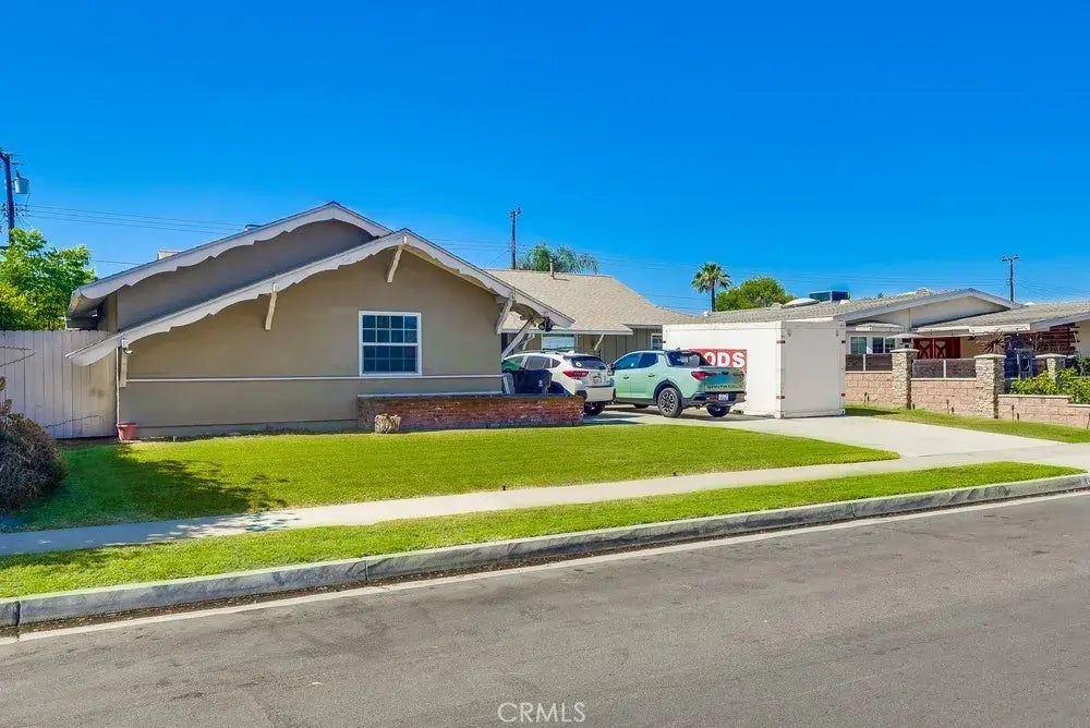 Welcome to 8192 Ashgrove Dr, a charming single-story home nestled in a quiet La Mirada neighborhood. With its welcoming red front door, this thoughtfully laid-out residence offers a warm blend of character, functionality, and inviting indoor-outdoor living spaces. As you enter, a central hallway anchors the homes layout and sets the tone for the home's smart design. To your right, a cozy bedroom offers flexibility as a guest room, office, or hobby space. To your left, the kitchen is equipped with a gas stove, ample cabinetry, and essential appliances. The kitchen seamlessly connects to a dining room full of charm and personality, featuring a striking dark wood slanted beam ceiling and a unique brick accent wallthe backside of the living room fireplaceadding warmth and visual interest. Just off the dining room is a glass-enclosed office space, perfect for working from home, as well as an additional storage room for extra convenience. Continuing down the main hallway, youll find another well-sized bedroom and a full bathroom before the space opens up on the left into a spacious living room. This warm and inviting area features a classic brick fireplace as its focal point and large sliding glass doors that lead to the backyard, perfect for seamless indoor-outdoor entertaining. Connected directly off the main hallway to the right, a second hall leads to two additional bedrooms and another full bathroom, creating a private wing ideal for family or guests. Finally, the expansive backyard offers a mix of patio space for outdoor dining and lounging, a refreshing pool perfect for su