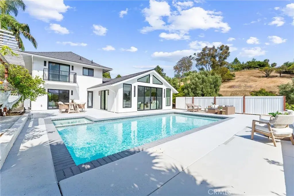 PRICE IMPROVEMENT! Fully remodeled, turnkey home at exceptional value. Move-in ready coastal retreat with hill, city lights and sunset views. This 5 bedroom, 3.5 bathroom pool home, located in the highly sought after Pacesetter community of Laguna Niguel, underwent an extensive remodel and complete renovation in 2022. This home was redesigned inside and out. Ideal location across from La Hermosa Park and scenic, hillside trail. Step through the stunning, pivot front door into this contemporary retreat with soaring ceilings and an abundance of natural light. Featuring a first-floor primary suite offering tranquil hillside views AND an additional main-level bedroom, with private exterior entrance includes an en suite bath with walk-in shower and a fully equipped kitchenette. Perfect for guests, extended family, or rental potential. Porcelanosa luxury Spanish tile compliments the inviting, open-concept living space. Kitchen features Taj Mahal quartzite counters, spacious island with ample storage, new cabinets, top-of-the-line appliances, including a Thermador range, Bosch microwave/oven and dishwasher and LG refrigerator. Kitchen flows seamlessly into the spacious family room where you can enjoy views of the pool and hills. 2 sets of sliding glass doors in family room lead to different areas of the expansive backyard. Custom, floating wood stairs lead to 3 additional bedrooms, each with their own view, a full bathroom, and a versatile bonus room ideal for a playroom, craft room, or extra storage. One of the upstairs bedrooms has a deck with an amazing, panoramic view. Step ou