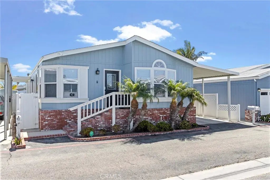 This impressive home is located in the desirable Huntington Shorecliffs community, just minutes from the beach, Pacific City, and Main Street. With 3 bedrooms, 2 bathrooms, a dedicated den, and just under 1,600 sq. ft. of interior space, the layout offers a spacious, functional design with quality finishes throughout. Interior features include vaulted ceilings, crown molding, updated flooring, and a seamless flow between the living, dining, and den areas. French doors open to a versatile den, ideal for a home office, fitness space, or guest retreat. The kitchen is well-appointed with white cabinetry, a full appliance suite, blue tile countertops, and a dining area framed by large windows that bring in abundant natural light. The primary suite features a walk-in closet and an en-suite bath with dual sinks, a large soaking tub, and a separate shower. Two additional bedrooms are located near a second bathroom that includes a walk-in shower. An oversized laundry room with exterior access adds convenience and extra storage. Outside, the home offers a two-car covered carport, private gated entry, clean hardscaping, and a fenced patio with a pergola and storage shed creating a comfortable outdoor space with privacy and function. Residents enjoy access to two pools, two clubhouses, a fitness center, billiards room, BBQ areas, and walking paths, all within close reach of the sand and some of Huntington Beachs most popular shops and restaurants. A standout opportunity in a well-established coastal community.