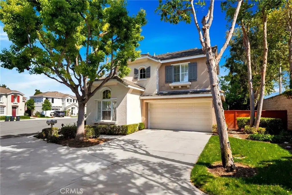Welcome home! Located on a quiet cul-de-sac with an oversized corner lot in the popular Promenade neighborhood, this beautiful 3-bedroom, 3-bathroom home offers an open and functional floor plan within a fantastic community! Step inside to discover gorgeous luxury vinyl flooring and soaring high ceilings and an abundance of windows that flood the home with natural light, creating a bright and airy atmosphere. The spacious living room features a cozy fireplace and plantation shutters, seamlessly opening to the dining area and roomy kitchen. The kitchen was beautifully updated in 2022 with quartz counters and all new stainless steel appliances, which include a Wolf oven, Kitchenaid dishwasher and a Samsung refrigerator with a touch screen family hub! Sliding glass doors lead you to the large wraparound private backyard with a spacious yard and perfect for relaxing or hosting! The functional layout includes a coveted downstairs bedroom with an adjacent full bath, ideal for guests, an office, or future single-level living needs. Upstairs, you will find two additional spacious bedrooms, each with its own full bath. The primary suite is oversized with dual vanities and a large walk-in closet, while the secondary upstairs bedroom includes its own full bathroom with tub and shower. Additional features includes an upstairs laundry room for convenience, central A/C and heat for year-round comfort, and a two-car garage with direct access! Enjoy walking distance to top-rated Don Juan Avila Elementary and Middle Schools, both Blue Ribbon award-winning schools, with Aliso Niguel High Sc