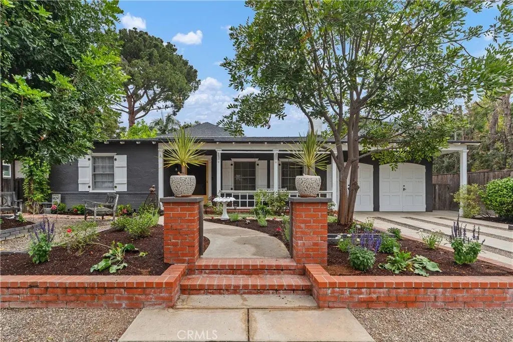 Beautifully blending original 1930s character with carefully designed modern upgrades, this two-bedroom, one-bath home in highly sought-after Park Santiago is move-in ready. The attention to detail is immediately evident, starting with the professionally landscaped cottage-style front yard and inviting trellised front porch with porch swing and Dutch-door. Inside, you'll find original oak hardwood flooring, detailed moldings, divided-light windows, and an open living and dining space anchored by a classic fireplace. The kitchen has been remodeled to replicate the original 1933 woodwork, paired with Vermont Soapstone countertops, upgraded hardware, and high-end fixtures. A built-in breakfast nook and French doors offer great natural light and easy indoor-outdoor flow. The remodeled bathroom stays true to the vintage design with white subway tile, black accents, a frameless glass shower, and Restoration Hardware double vanity with Rejuvenation fixtures. Venture outside to the private brick patio, complete with an open arbor for morning coffee and a covered section ideal for outdoor dining or entertaining. Mature citrus trees complete the backyard setting. System upgrades include updated electrical, plumbing, and central A/C for efficiency and comfort. Within a short distance of Santiago Park, City Place shopping and dining, MainPlace Mall, Mothers Market, and the Santa Ana Discovery Cube. Convenient access to local hospitals, Downtown Santa Ana, CHOC, OCSA, Disneyland, and freeways.