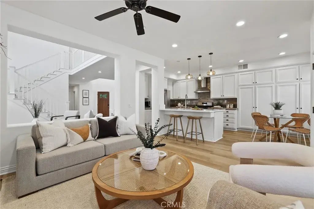 Designed to Embrace Californias Indoor Outdoor Living, Sophistication and Elegance are the Hallmarks of this Impeccably Designed 3 Bedroom 2.5 Bathroom +LOFT Home. Featuring Stunning Upgrades in every direction, this beautiful home has everything you have been looking for and more! The Elegant Curb Appeal and Lush Landscaping does not go unnoticed as you grace the Stone Walkway leading you to the front door. Upon entry the Modern Upgrades and On-Trend Designs are immediately noticed with Light Neutral Toned Luxury Vinyl Flooring Throughout The Entire Home, Stunning Designer Light Fixture, and Soaring Two-Story Cathedral Ceilings allowing for an abundance of Natural Light to flood the home. The Spacious Great Room and Designated Dining Area providing the Perfect Ambiance for your daily routine. The Chef's Kitchen features Stainless Steel Appliances, Upgraded Quartz Countertops, Designer Tile Backsplash, Designer Pendant Lights, On Trend Hardware, Beautiful Upgraded Extended White Cabinets and a Charming Breakfast Nook. Enjoy the adjacent Family room with an Inviting Fireplace and plenty of space to entertain. Continue outside through the French Doors and relax under the shade of the Elegant Overhead Trellis. Enjoy the benefits of a Built In BBQ Island and multiple seating areas. The Lush Landscaped backyard features the ideal Tranquility and Privacy with Beautiful Greenbelt views and no direct rear neighbors. The Spacious Laundry Room and half bath round out the first floor. Continue upstairs and notice the Upgraded Stair Banister with Elegant Wood Detailing. Three Spacious