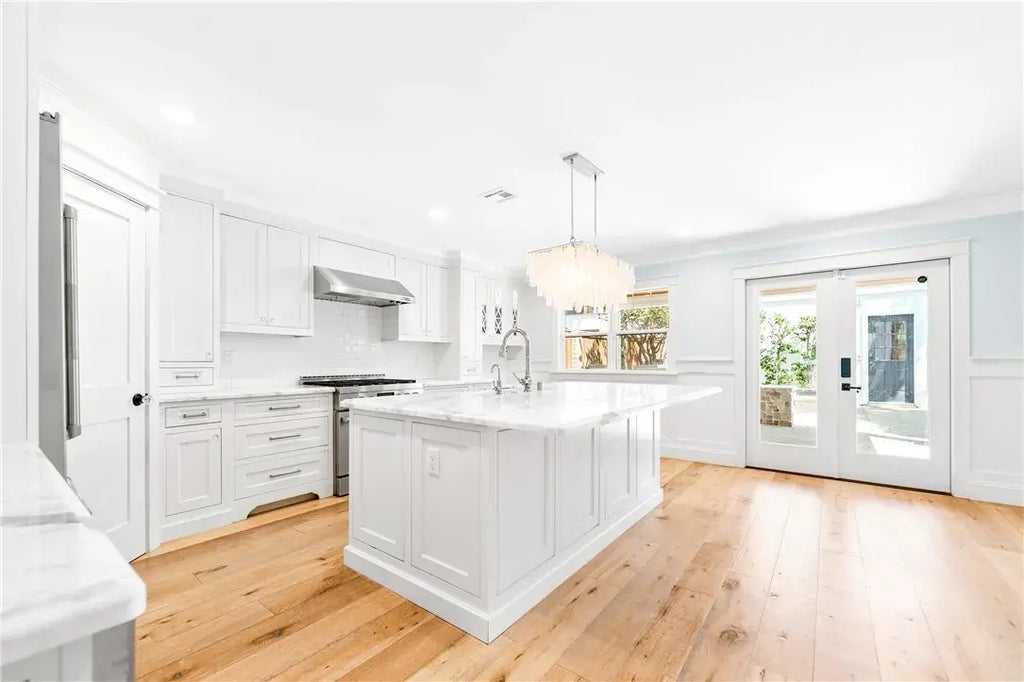 Exquisite detail on this beachside cottage, just two blocks from the Ocean! It's sweet, luxurious, and unpretentiously comfortable. The beach vibe is perfectly matched with elegant luxury. It's the perfect size - homey, cozy, and unbelievably classic. The exterior features black and white contrast, an ideal style, and the interior has warm white custom cabinetry with sand-colored hardwood wide plank floors. It's elegant, charming, and efficient, with every single square inch perfectly built to maximize storage and organization. The west-facing front patio is ideal for enjoying a stunning Huntington Beach sunset. Additionally, the double-slider in the living room allows for relaxing on the couch while taking in the view. The interior has custom cabinets on nearly every wall, and the living room boasts floor-to-ceiling built-ins with distinctive details. The kitchen looks delightful with warm white cabinets, elegant counters, an apron-front sink, and stainless-steel appliances. The center island provides seating for five, and a built-in desk is the perfect place to catch up on an email or look up a recipe. The outdoor area features two pass-through windows and wide French doors that lead to a charming, covered patio. The patio boasts natural wood boxed eaves, recessed lighting, a rustic chandelier, and a fireplace overlooking the spa, all of which come together to create a special and inviting outdoor living area. All three bedrooms are in excellent condition. The primary suite features an attached balcony facing east to capture the morning sun. The three bathrooms are all st